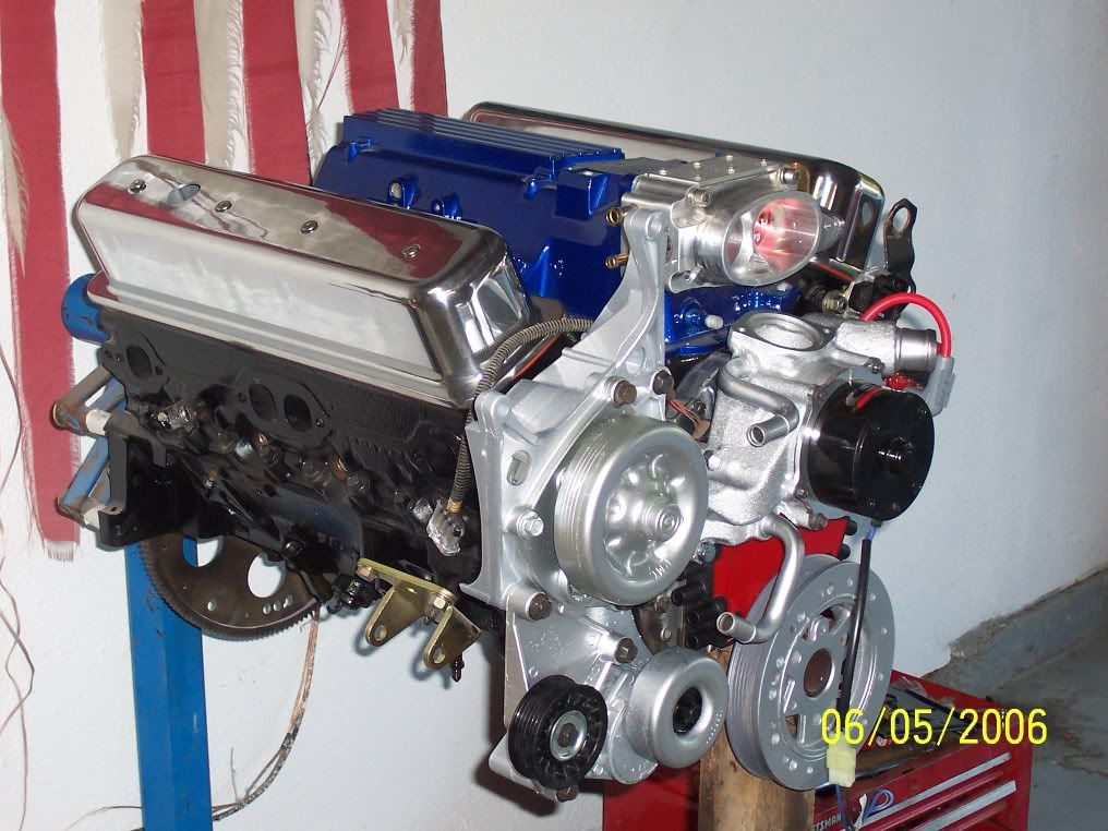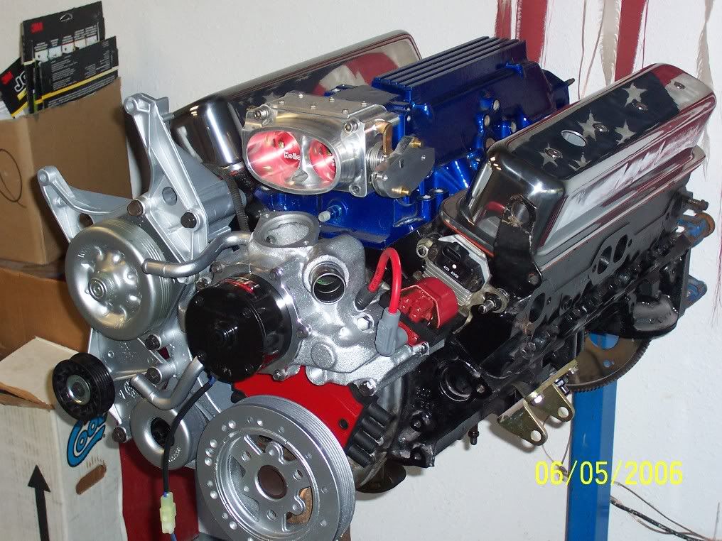 i was working on the motor today and got it all toget her i still need to put the headers on and the milodon oil pan get some spark plugs and put the msd wires on any one know were i can get a crome lt1 altonator? also i need a name for this project so trow some names at me