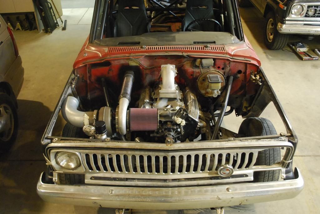 https://www.youtube.com/watch?v=IX3RpiTf1N8 http://i30.photobucket.com/albums/c3...ps71767cd4.jpg http://i30.photobucket.com/albums/c3...ps647c9db1.jpg And a shot of the engine plan (at the time). AMC 401 based engine with an 83mm turbo. It's now all in my '77 4 door Wagoneer. http://i30.photobucket.com/albums/c3...psa5c1e32b.jpg After the engine/turbo got donated to my Wagoneer, I threw this one in there for the time being. 712 hp all motor 401 stroker (454"). http://i30.photobucket.com/albums/c3...psc94903d6.jpg |