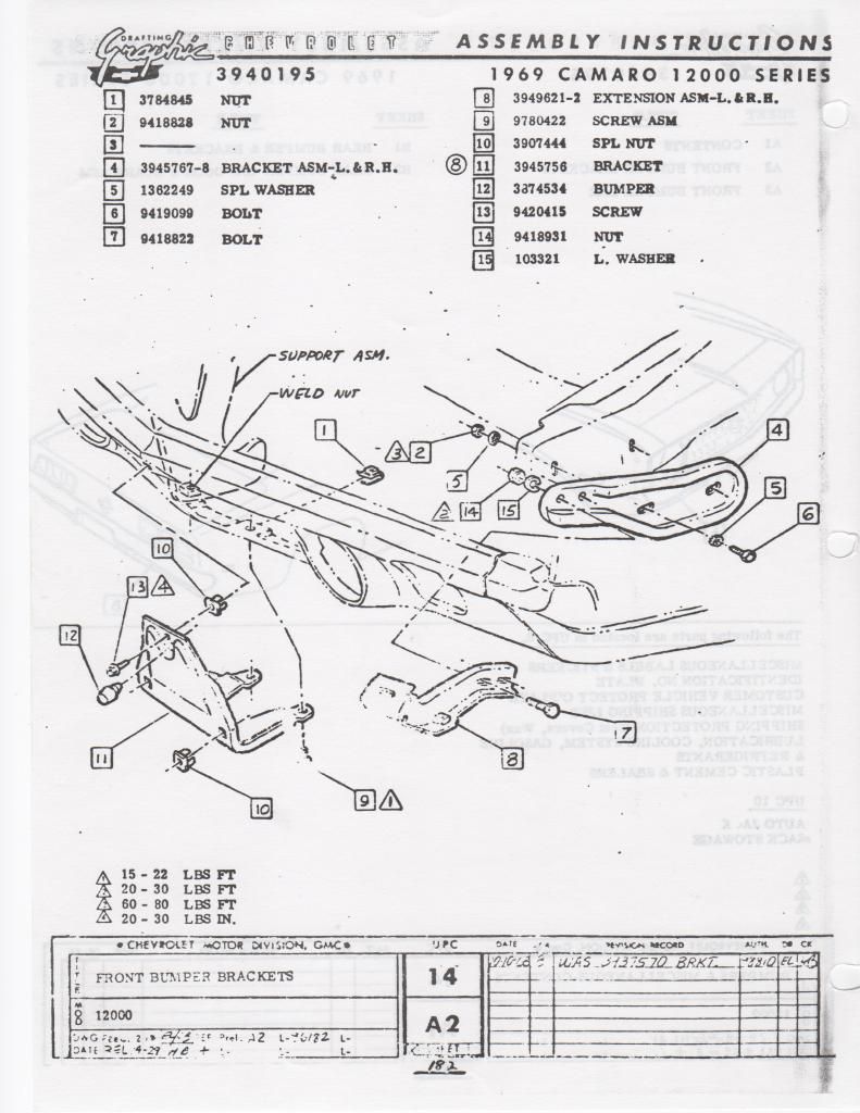 I can provide actual pictures of the brackets if you like, but I wonder if these diagrams from the assembly manual will provide the info you need. The parts are shown in nice detail (and are readily available) on the Rick's Camaro website. Let me know if you want actual photos. http://i1113.photobucket.com/albums/...ontbumper.jpeg http://i1113.photobucket.com/albums/...ntbumper2.jpeg Bill |