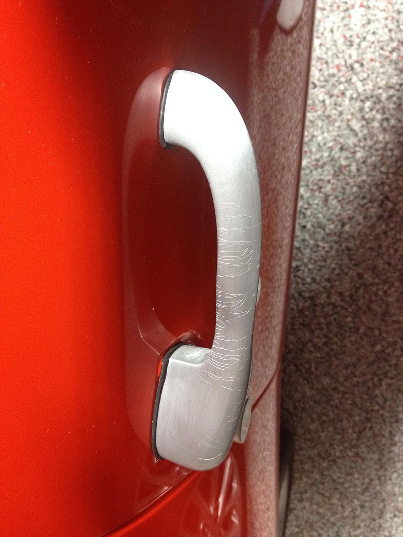 Some people were looking at my car this morning and noticed the coating on one of the door handles is all cracked. The other side seems fine, at least so far.