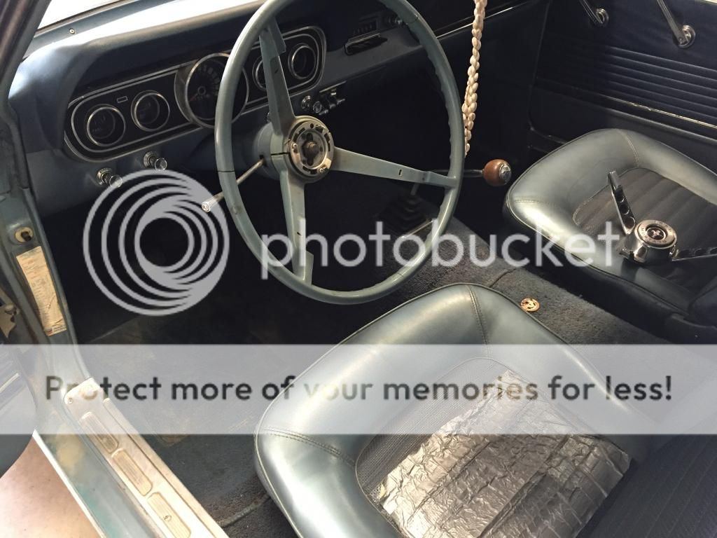 Price: $5500 Description: I bought this '66 Mustang from a long time friend to help her out. I just have too many cars at the ranch now so I need to thin the herd a bit. My friend got this car on her 16th birthday and gave it to her aunt in the early '70s when she moved to California. The car has a clear Colorado title from the '70s. It's awesome. The car is originally a Brittany Blue car with blue interior. It has one paint job on top of the original which has a nice, even patina all over. She says she hit something in Colorado State's parking lot at damaged the right door. Her dad had it fixed and the whole car painted. The only repair or filler in the entire car is in that right door. It's in the bottom, front corner of that panel. The right fender is original and untouched. All of the panels are original to this car. The floors, trunk, cowl, rear window, sills, lower fender edges, and lower quarters are rust free. I cannot find any corrosion on this car. The torque boxes are perfect and the shock towers are mint. It's got 107K original miles and her father demanded it be stored in the garage during winter seasons so that probably saved the car. The car has a 200 inch six and a three speed on the floor. It's got the 7.5 inch diff, power steering, and power brakes. The car does run, but it's missing the ignition switch. I jumped the coil to the battery, put fuel in it and lit it up. The carb needs a rebuild as I think it's full of old fuel and varnish goo. I bought a carb kit, ignition cylinder, and fuel pump for it yesterday. I'm confident that will get this car moveable under it's own power again. I ran it through the gears at idle on jack stands and everything functions. This car has been in storage since 1980 so it's a bit of a time capsule. I'd like to get my money out of it aside from the parts I bought and my time. $5400 http://i394.photobucket.com/albums/p...psb03e7d62.jpg http://i394.photobucket.com/albums/p...psed31e26b.jpg http://i394.photobucket.com/albums/p...psffd534cf.jpg http://i394.photobucket.com/albums/p...ps78251409.jpg http://i394.photobucket.com/albums/p...ps84b10948.jpg http://i394.photobucket.com/albums/p...psedbf40c1.jpg http://i394.photobucket.com/albums/p...psfb8ed86b.jpg http://i394.photobucket.com/albums/p...psbb14efac.jpg http://i394.photobucket.com/albums/p...ps166b94fd.jpg |