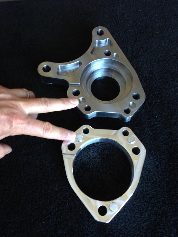 Yes, they do take the C5/6 parking brake assemblies. Actually if you choose not to run the e-brake/backing plate for whatever the reason, you would need to run a shim to account for the thickness of the backing plate to get proper caliper/rotor alignment. But I am assuming anyone interested in this setup would utilize the e-brake. Good question though. The "C6 End" fixture pieces do bolt to the three holes in the weld on flange end and positively locate it . Give me a few days on pricing for you on these as I only had one set made, and depending on interest may run multiples which brings my price down with my machinist and ultimately to the end purchaser. Hopefully you! I will let you know soon... |
