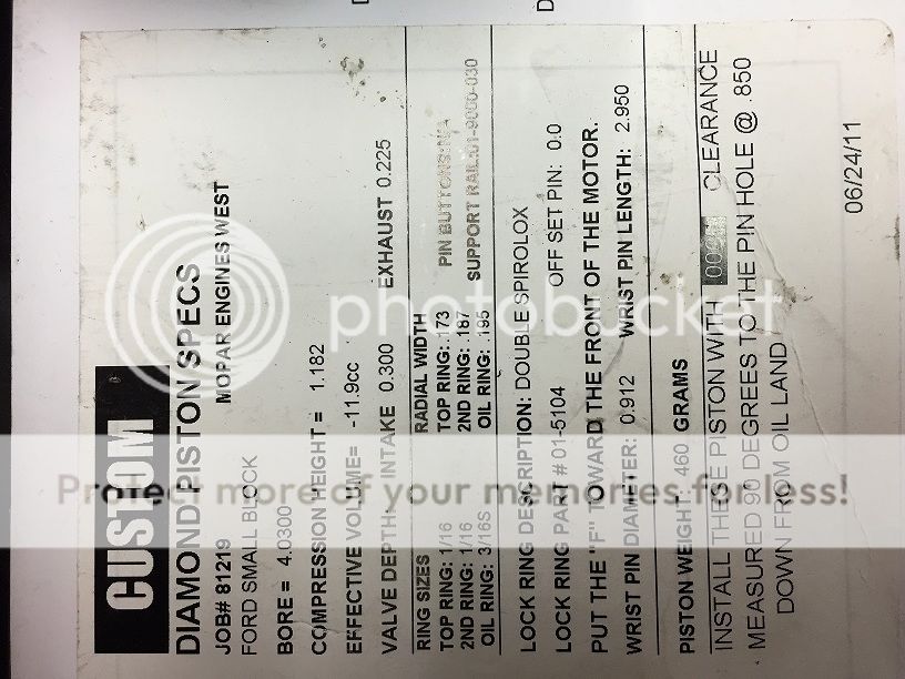 Price:$3500 Description: Brand new Ford Racing Boss 302 block machined for 347 stroker. Block has been honed, cleaned and is ready to run. This block is 1200+ hp capable. Block was machined and rotating assy. was balanced by Daves Engine Machining in Newark, CA. http://www.summitracing.com/parts/fm...s302/overview/ Crank is an Eagle 4340 347 stroker - balanced, polished, and ready to go. http://www.summitracing.com/parts/es...view/make/ford Rods are H beam Eagles 4340 http://www.summitracing.com/parts/es...view/make/ford Diamond custom 347 forged pistons, made for this block with the required skirt revisions. Comes with pins. Perfect for boost or bottle. Cost over $1000 All machine work is done and it's ready to assemble. Please let me know if you have any questions. http://i394.photobucket.com/albums/p...ps3ixbj1ig.jpg http://i394.photobucket.com/albums/p...psdg3d8yd7.jpg http://i394.photobucket.com/albums/p...pszftvcpcg.jpg http://i394.photobucket.com/albums/p...psutwq7ac2.jpg |