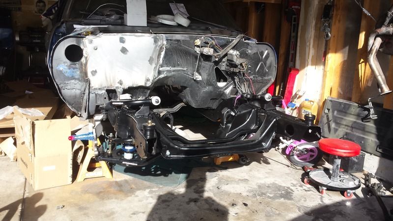I guess I really shouldnt have added the pics, they werent from anything specific just my current progress. I went out and took a few more pics. I guess I could just fit something in there and cut the hole out bigger. Right now I'm not even close. The shock is about an 1" from even going in the right hole. I didnt have the sub frame checked but I did align it prior to tearing it apart. No giant shim packs and everything was good on the machine. Its been a few years but everything was well in the manual steering camaro specs. This subframe looks to be well used though. Center has been cut and plate welded in, I dont really have a ton of history on the car. I bought it from a 18 year old kid trying to go to college. He thought it was a sb stroker with a muncie when it really was just a standard 350 with a super t-10. From what I gathered he got the left overs from his dad. No signs of any accidents though. OE sheet metal with no patches or excessive body filler.