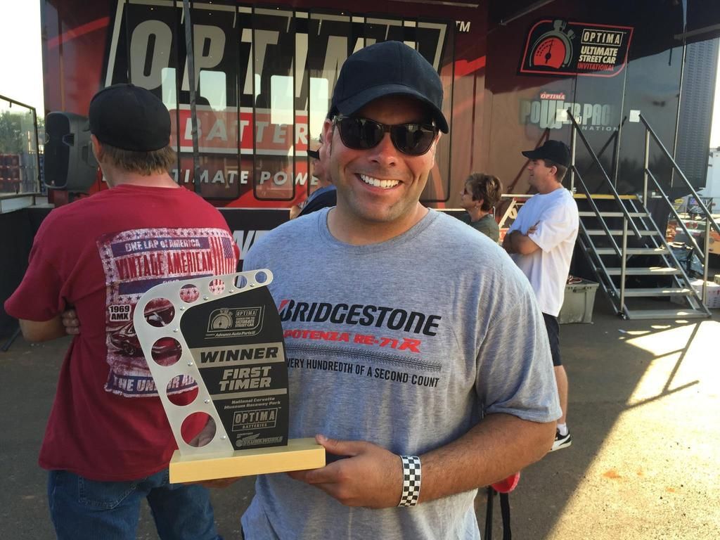 Very proud of this accomplishment! Jeremiah is a great guy and can absolutely drive the wheels off of anything that he sits down in. He ended up taking home the Optima Batteries Search for the Ultimate Street Car "First Timer" award, at NCM Motorsports Park, in Bowling Green, KY. His Mustang is bone stock, in exception to Ridetech HQ coilovers, in the front and rear. This was his Optima debut, but he landed in 5th place, in the GT class.