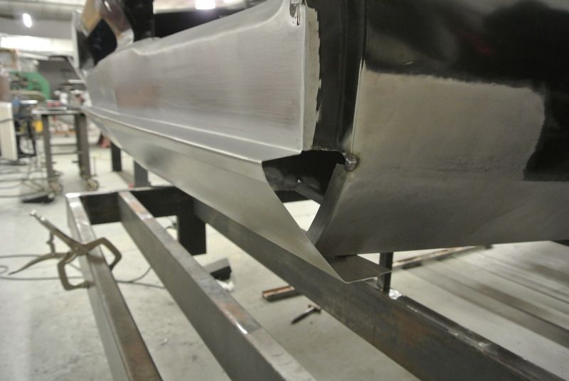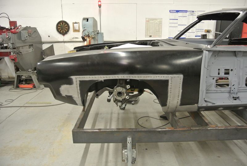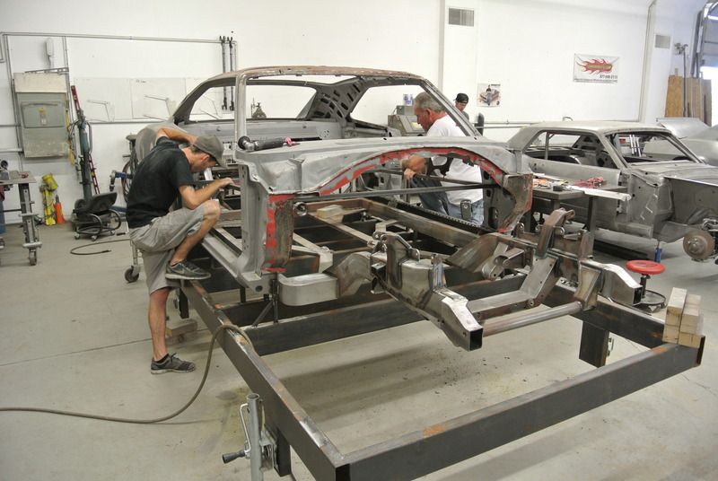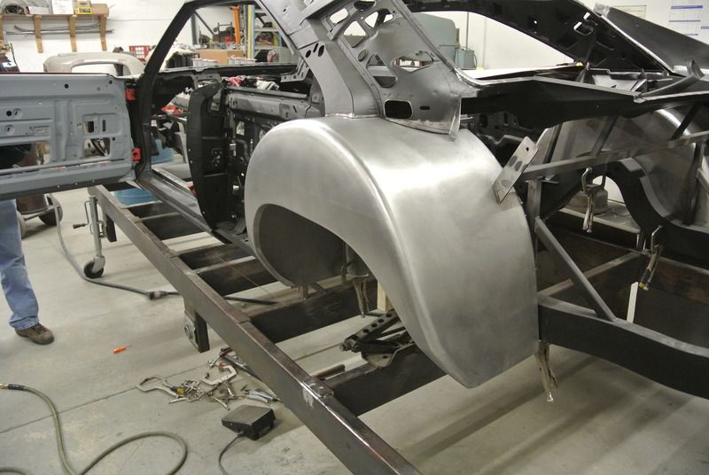http://i32.photobucket.com/albums/d3...psj13novsd.jpg We changed the lower mounting location on the fender to mount up rather than into the pinch weld which we eliminated earlier. http://i32.photobucket.com/albums/d3...pspvml90fn.jpg http://i32.photobucket.com/albums/d3...psfr1cltsa.jpg We had the Roadster Shop build the chassis with a 3 inch longer wheel base. I was never a fan of the large "overhang" in front of the wheel. http://i32.photobucket.com/albums/d3...pspzvczvfi.jpg http://i32.photobucket.com/albums/d3...psmyp3z9mx.jpg http://i32.photobucket.com/albums/d3...pskvnx8xre.jpg -troy |