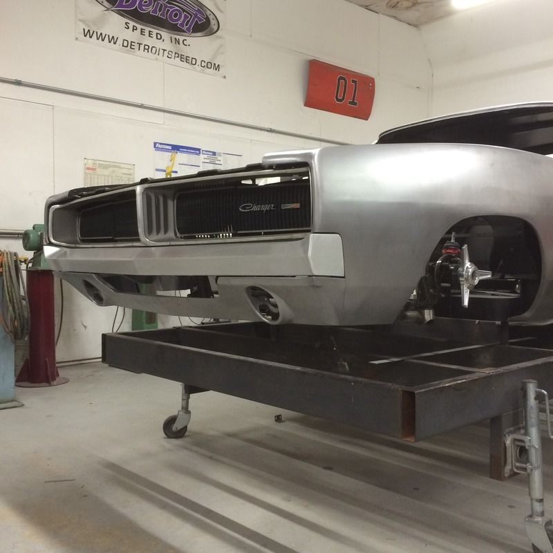 Another Modification I wanted to do was to flatten out the front valance and not have if fall under the car so bad. We had to rebuild the entire front section of the front fenders as well as build a front valance from scratch. We also built an alloy front chin spoiler.