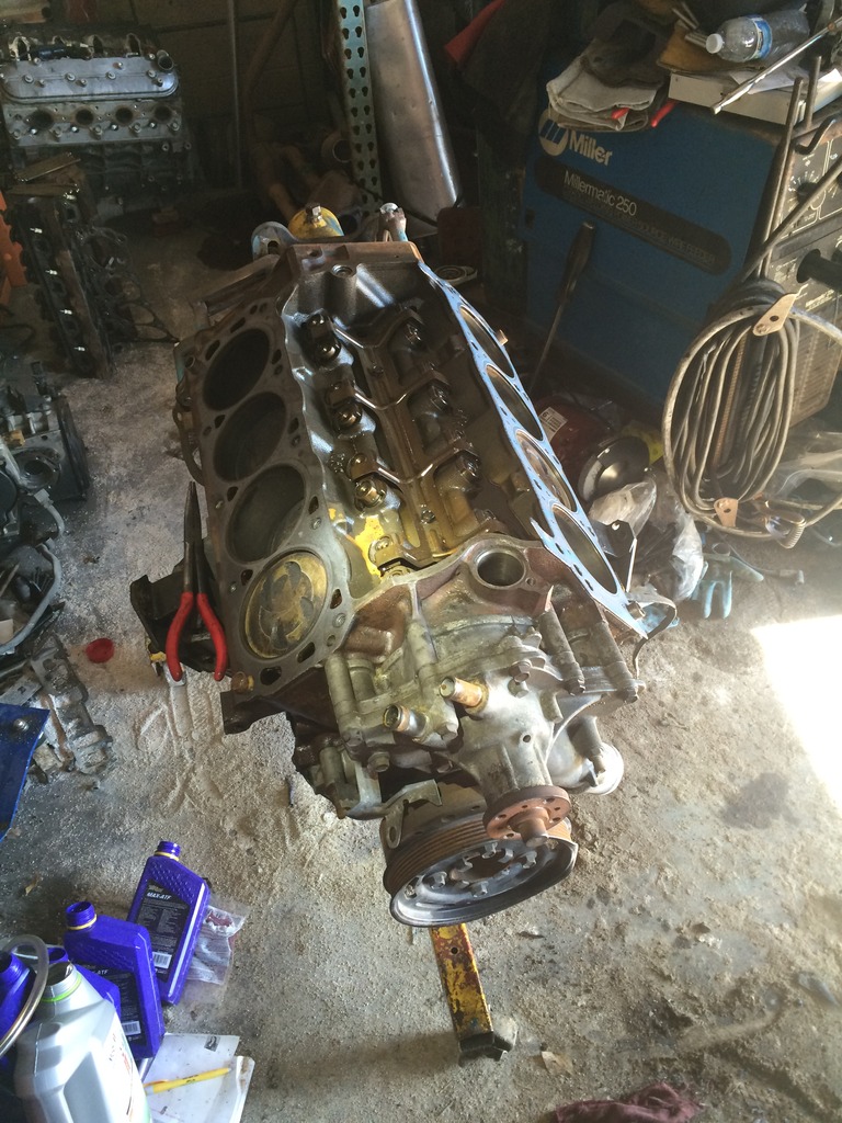 So here it is. I've bought another engine from these guys before and they have been good to me. This particular engine has been sitting on their shelf since 2001!!! I've had good luck using used engines to keep the price down, and this is another one of those cases. If you shop around enough, you can find a good deal on something that was crashed early in it's life for a good price. Attachment 56569 So I tore this one down to the bare shortblock, too. Attachment 56570 I had already sourced an E303 camshaft and some GT40 heads that I had rebuilt at the local machine shop. Attachment 56571 Redline lube to make sure the camshaft and lifters remain friends when it's started Attachment 56572 lots of scuffing and washing and a coat of painter's tape on the good parts Attachment 56573 Attachment 56574 now we've got an engine we can bear to look at..:confused59: Attachment 56575 |