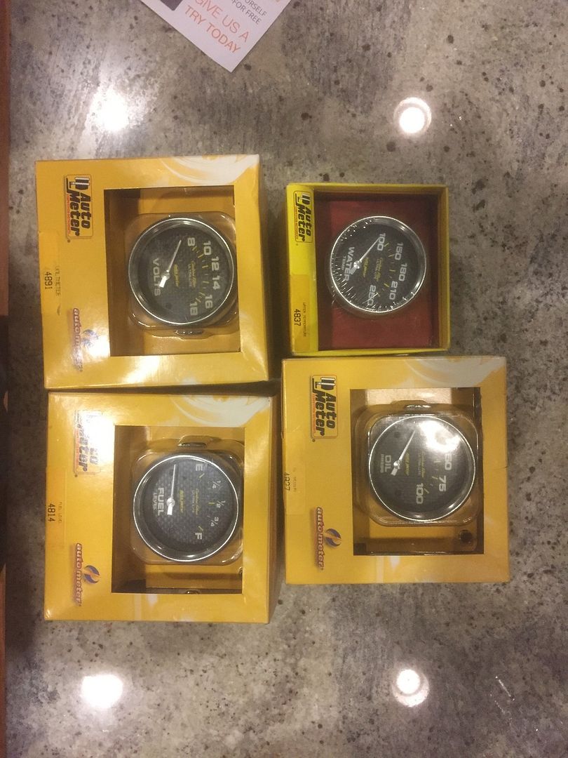 Price:225 Description: I have four gauges voltmeter, fuel level, oil pressure and water temp. All electric perfect for an LSX swap. All are brand new unopened in boxes. Sacrifice $225. This is an excellent deal. All part #s can be seen in the pic Price:$225 http://i177.photobucket.com/albums/w...s9ruyn1e0.jpeg Thanks Jonathan |