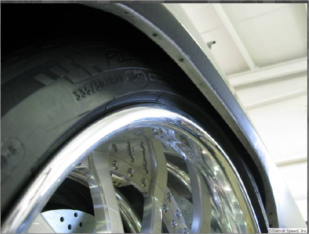 All you need is about a finger width between your outer fender and tire. It sounds like you rear end is to wide or you need to remove a spacer between the axle flange and wheel. How much room do you have on the inside between your tire and wheel tub? You need more space on that side to avoid a rub over transitions.