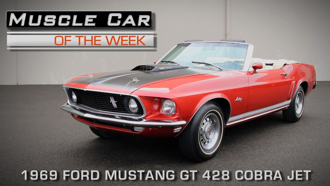 http://www.musclecaroftheweek.com - This 1969 Ford Mustang GT sports several cool features... a rare Indian Fire Red color, a power convertible top, and a 428 Cobra Jet engine under the hood! There weren't many like this one built, and it really stands out in the Brothers Collection! |