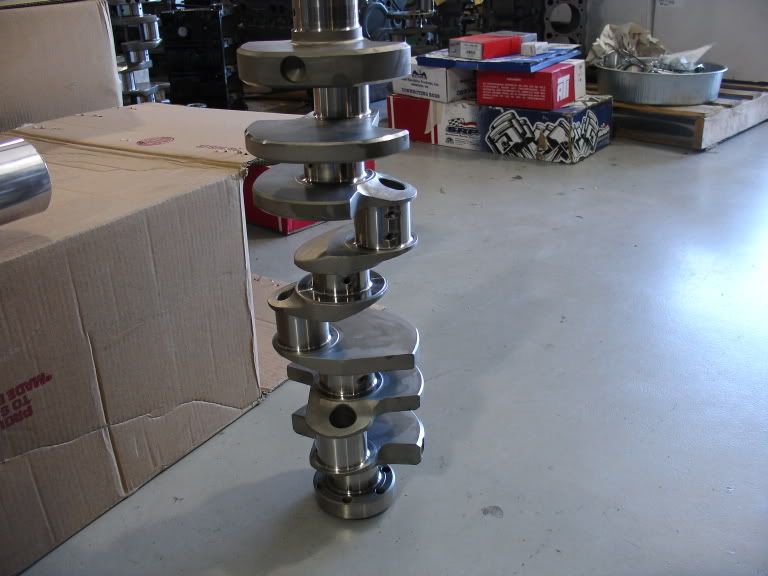 The motor is going to be a carberated 347cid stroker thats a full roller based off of a 92. It will have 10.5 to 1 compression with Racing Head Service aluminum racing heads flowing around 215. THe cam is a comp at 560/560 lift. It has a c4 with a 3500 stall all competition internals, full manual reverse pattern valve body. The rearend is an 8.8 with 3.55 gears.
