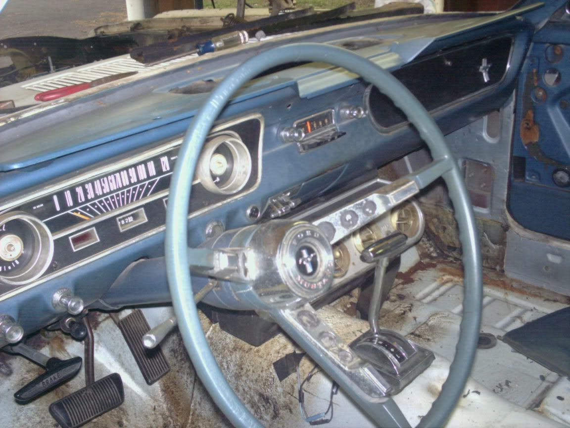 THe suspension is all new consisting of 1in lowring springs, new tubular a-arms, and fat sway bars. I am going for that "g-machine" look. The pony will be rolling on a set of 17x9 silver fr-500 wheels. ANd the int is all customed upholstered pony blue and light grey bench seat. I also have a chrome flaming river tilt column and manuel rack and pinion for it. I will keep this threa updated as the process goes on. Here are some pics of deconstruction and new parts for her.