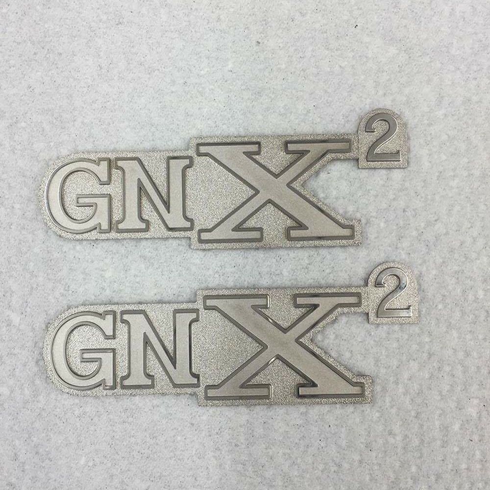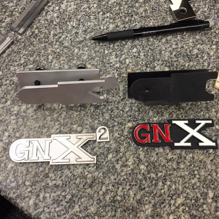 Custom GNX squared badges being made for car.