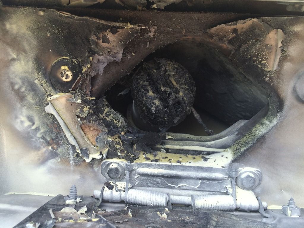 I took the car our to a local show this morning. After spending some time there I had to check out so I bolted and headed home. I pulled into my driveway about 30 mins later at which point I spotted smoke coming from the back of the car. Engine vitals were all good so I jumped out to see what it could be. To my surprise the car was on fire from the license plate area. I grabbed the fire extinguisher from inside the car and put the fire out. Of course I was pretty shaken and my heart was racing. I am aware many have not been so lucky but I did learn a pretty important lesson to always have an extinguisher in these old cars. You never know when you will need it. The damage could be a lot worse. The suspicion is an electrical short combined with a leaking gas cap was the cause. Still not 100% sure of the ignition source but man do I feel lucky to have been able to put the fire out without further damage.