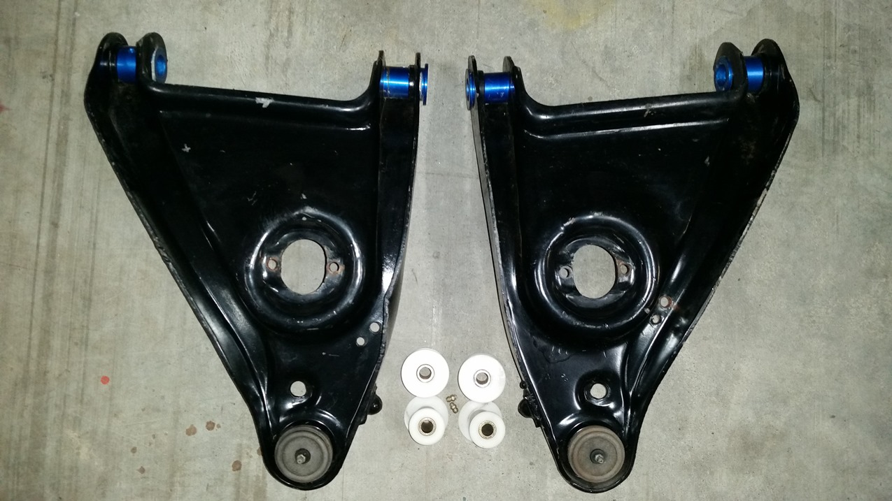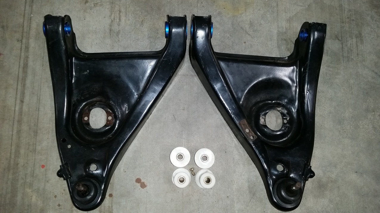 SOLD Price: $100 + shipping Description: These lower control arms have the Del-a-lum bushings. Attachment 61264 Attachment 61265 |