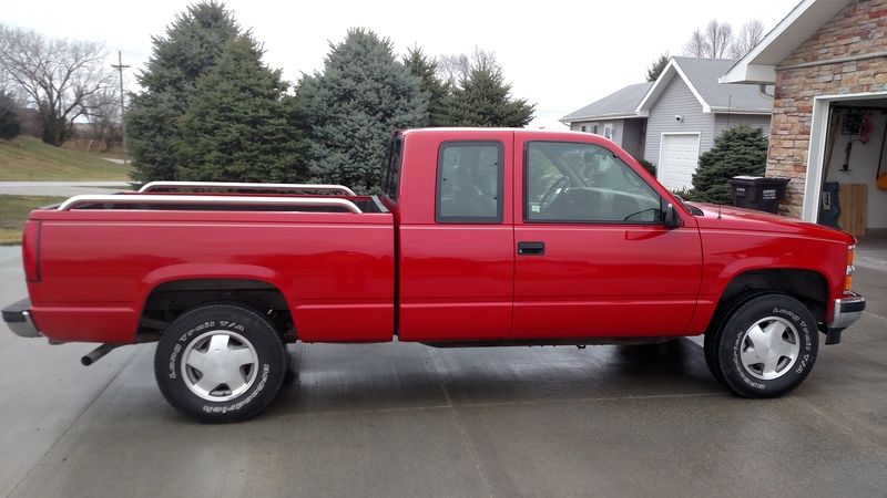 Price: $13,000 O.B.O Description: This is my 1997 Chevy Ext Cab 4x4. I am the second owner, Clean title in my name. I purchased the truck from a Chevy dealership in Ohio where the original owner traded it in on a new Silverado. Clean Autocheck on Ebay 57,822 Original Miles. Tiara Motorcoach Conversion. Which includes custom leather seats, custom center console, custom overhead console with hidden radar detector. The leather is soft with no rips or tears. There is NO body rust but scaling rust on the frame. Appears to have been undercoated. There are normal scratches and minor dings as expected on a truck of this age. The truck runs and drives great! Factory Cd player but NO 3rd door. There is a sliding rear window and GM drop in bedliner. Everything works but the parking brake. Tires are 1/2 to 3/4 tread in my opinion. Wheels are in great shape. COLD A/C and Hot Heat May take a 87-91 Chevy or GMC v30/k30 fuel injected square body as a partial trade! Obviously no warranties and AS-IS condition. Just a nice good truck. I can take any pictures that are requested or needed. http://i131.photobucket.com/albums/p...pswmgphg5v.jpg http://i131.photobucket.com/albums/p...psxwrdizja.jpg http://i131.photobucket.com/albums/p...psqlwlpsjh.jpg http://i131.photobucket.com/albums/p...psjcyqpivg.jpg http://i131.photobucket.com/albums/p...pshfdkjy65.jpg http://i131.photobucket.com/albums/p...ps5becwuls.jpg http://i131.photobucket.com/albums/p...pswquqqsjt.jpg http://i131.photobucket.com/albums/p...psrukpkri4.jpg http://i131.photobucket.com/albums/p...ps01ten1bp.jpg http://i131.photobucket.com/albums/p...psxvvpjddp.jpg Thanks, Jarrod |