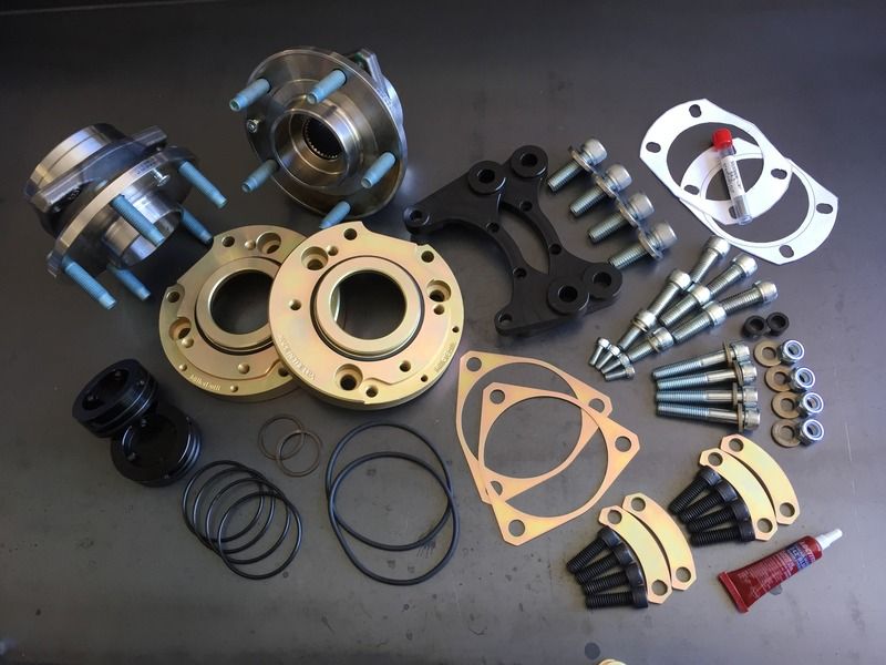 Fitment: Any rear-end housings that utilizes Early or New Style/Torino Ends Big Ford Bolt-On “Base Kit” (pictured below) http://i35.photobucket.com/albums/d1...psnt1tqujq.jpg Big Ford Bolt-On “Base Kit” (pictured above) Base Kit Includes: • (2) Billet Steel, C-Series, Hybrid Floater Adaptors • (2) Billet Aluminum Caliper Brackets • (2) C7 Corvette, SKF 33 Spline Hub Assemblies • (1) Install Kit • (2) Hub Spacers • (2) Billet Aluminum Hub Cap Seals ________________________________________ PRICED AT - $1,398.00 Add Axles - $400.00 • (2) Hy-Tuf Full Float Axles Add E-Brake items - $325.00 • (2) C5/C6 Corvette Complete E-brake Assemblies • (2) C5/C6 Corvette Parking/E-brake Cable Brackets Have interest? Have questions? Need more info? Distributor Inquires Welcome! Below pics of the assembled "Base Kit".... (attached Big Ford End is for display purposes only) http://i35.photobucket.com/albums/d1...psjpfgqbf1.jpg http://i35.photobucket.com/albums/d1...pscufmbsxq.jpg http://i35.photobucket.com/albums/d1...psffq0zgok.jpg Below pics shown with optional C5/C6 E-brake Assembly & E-brake Cable Bracket. These two e-brake items are optional and the system can be run without and added at a later date if desired.... (attached Big Ford End is for display purposes only) http://i35.photobucket.com/albums/d1...psbkdyb2mm.jpg http://i35.photobucket.com/albums/d1...pstji44xps.jpg http://i35.photobucket.com/albums/d1...psprbaaird.jpg Big Ford "Bolt-On" kit in action! http://i35.photobucket.com/albums/d1...pseplkab3u.jpg |