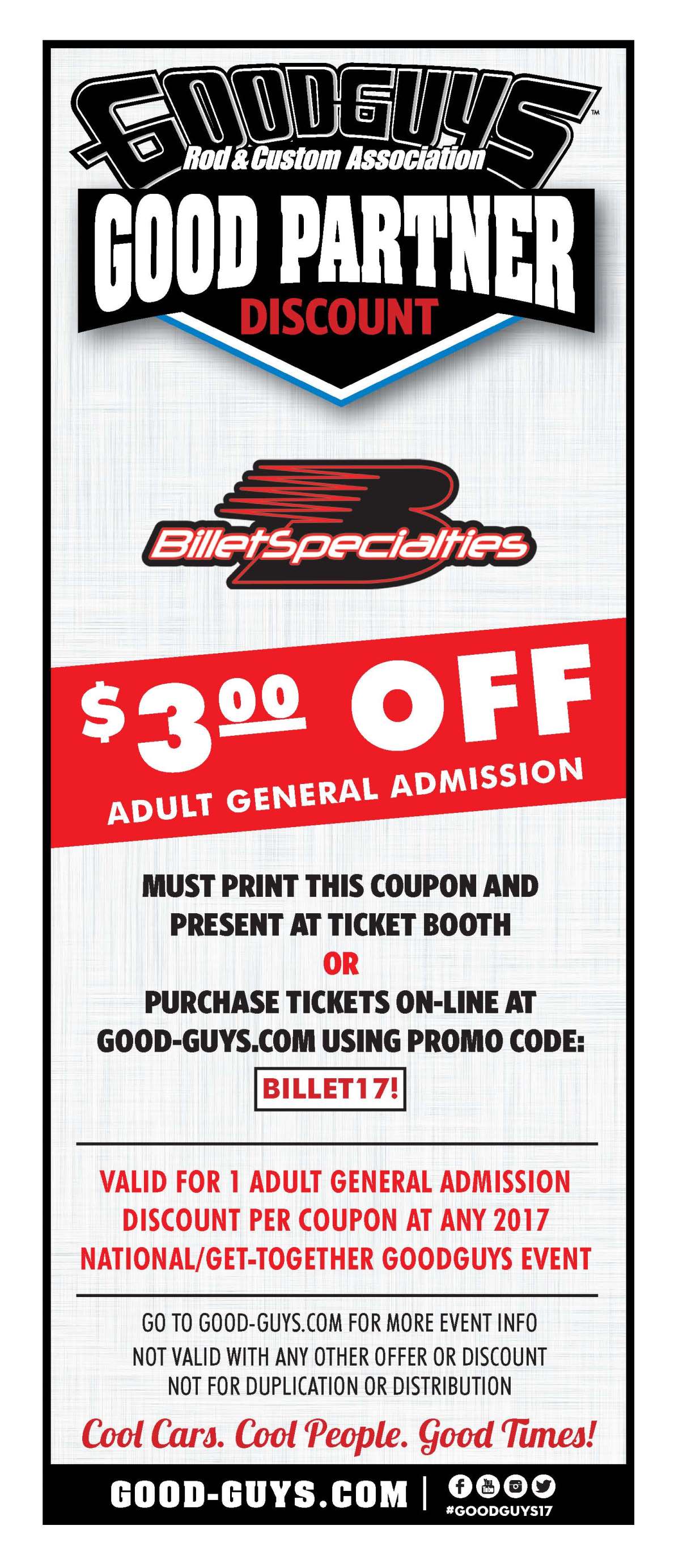 Save $3.00 for any of the remaining Good Guys Events.