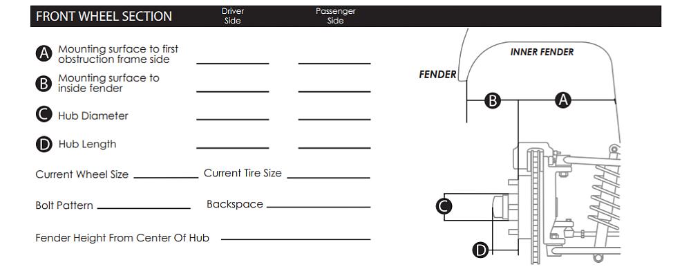 Here are some guides and the measurements we ask for when someone orders new wheels.