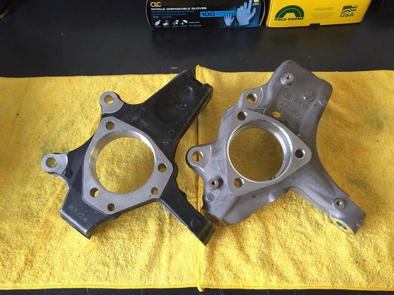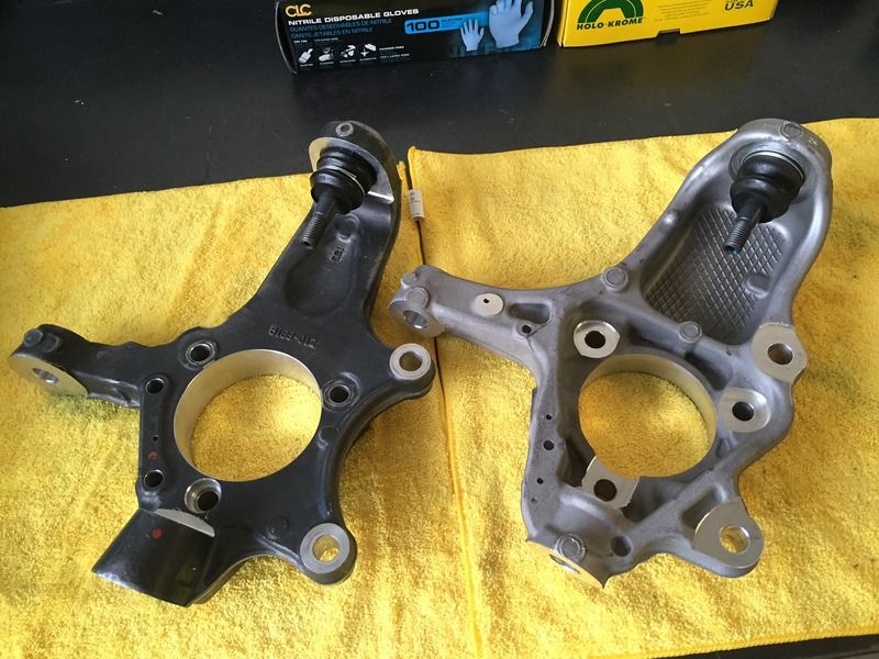 Weld-On Kit - https://lateral-g.net/forums/showthread.php4?t=52443 Bolt on Big Ford Kit - https://lateral-g.net/forums/showthread.php4?t=49657 Bolt on GM 10/12 Bolt - https://lateral-g.net/forums/showthread.php4?t=52854 Bolt on Moser 7900 type end - https://lateral-g.net/forums/showthread.php4?t=53767 Or visit my site http://www.millerbuiltusa.com/ All my kits utilize the C7 Corvette hub bearing unit and are compatible with C5/6/7 brake packages (both OEM and aftermarket). With that said, I have had multiple clients express their interest in running OEM C7 Corvette brakes which is not a problem on my rear Full Floater kits however, if you are currently running an aftermarket front suspension such as DSE, Roadster Shop, Art Morrison, etc. that utilize the C5/6 knuckles/spindles you are unable to run the latest OEM (Brembo) C7 brakes. No one that I know as of now offers this, and just as the C5/6 OEM brake packages have become ever so popular on our classic cars over the years I think the OEM C7 Corvette brakes will become just as popular a retro-fit... The quickest and easiest way ideally would be to simply utilize the current OEM C7 Upright if at all possible since these pieces are readily available and very cost effective. Like others often do, I started with the good ol' internet to see what I could find on this subject. Based on all the discussions I found, the C5/6 uprights differed too greatly from the latest C7 and could not be interchanged due to irreconcilable suspension/steering geometry differences. Always taking the Internet with a grain of salt and with a minimal goal of at least creating a caliper bracket of sort, I went ahead and purchased a C7 Upright so I could see for myself what all would be involved to possibly create a direct bolt in replacement for current C5/6 Upright users. The purpose of this retrofit you may ask? 1) Stronger, more rigid design when compared to the C5/6 varient 2) Allows usage of all OEM/Aftermarket C7 Corvette brake packages 3) Allows usage of all OEM/Aftermarket C5/6 Corvette brake packages (when MillerBuilt Caliper Bracket Adaptor is used) 4) Perfect compliment to the MillerBuilt rear Hybrid Full Floater Sytems 5) Transforms your current "C5/6" based front clip into the latest "C7" front clip 6) Readily available & very cost effective should one need to be replaced for any reason 7) Cool factor by utilizing the latest OEM offering! What did I find and is this possible? What I found is they are nearly identical in every way with the exception of a few minor details that will not affect suspension/steering geometry (steering because "we" cut these off anyhow and utilize modular bolt-ons to accommodate each manufactures designs). I am still in the process of how I will address some of the finer details but wanted to share as I progress. http://i35.photobucket.com/albums/d1...ps24qpchlq.jpg http://i35.photobucket.com/albums/d1...psuaglascs.jpg http://i35.photobucket.com/albums/d1...psymerllmg.jpg http://i35.photobucket.com/albums/d1...ps4qj9awkp.jpg Sent from my iPhone using Tapatalk |