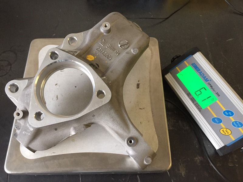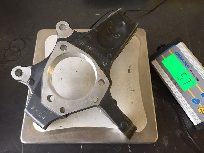 Bear with me, this is a rough prototype of the caliper bracket/adaptor that will be offered should you only be interested in the rigidity the C7 Upright itself offers and would like to retain your current C5/6 (OEM or Aftermarket) brake package!