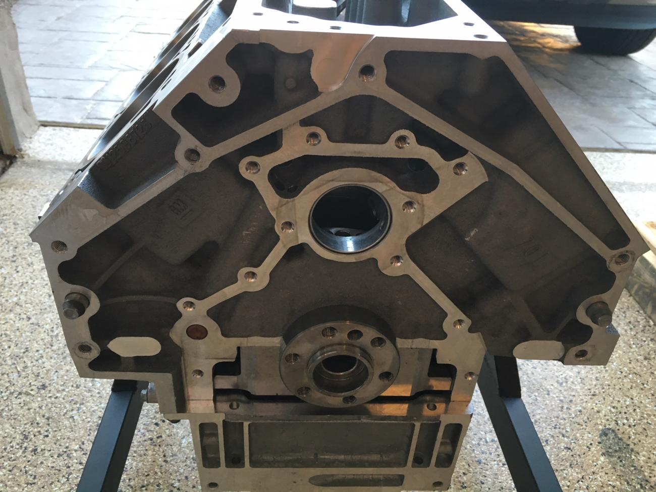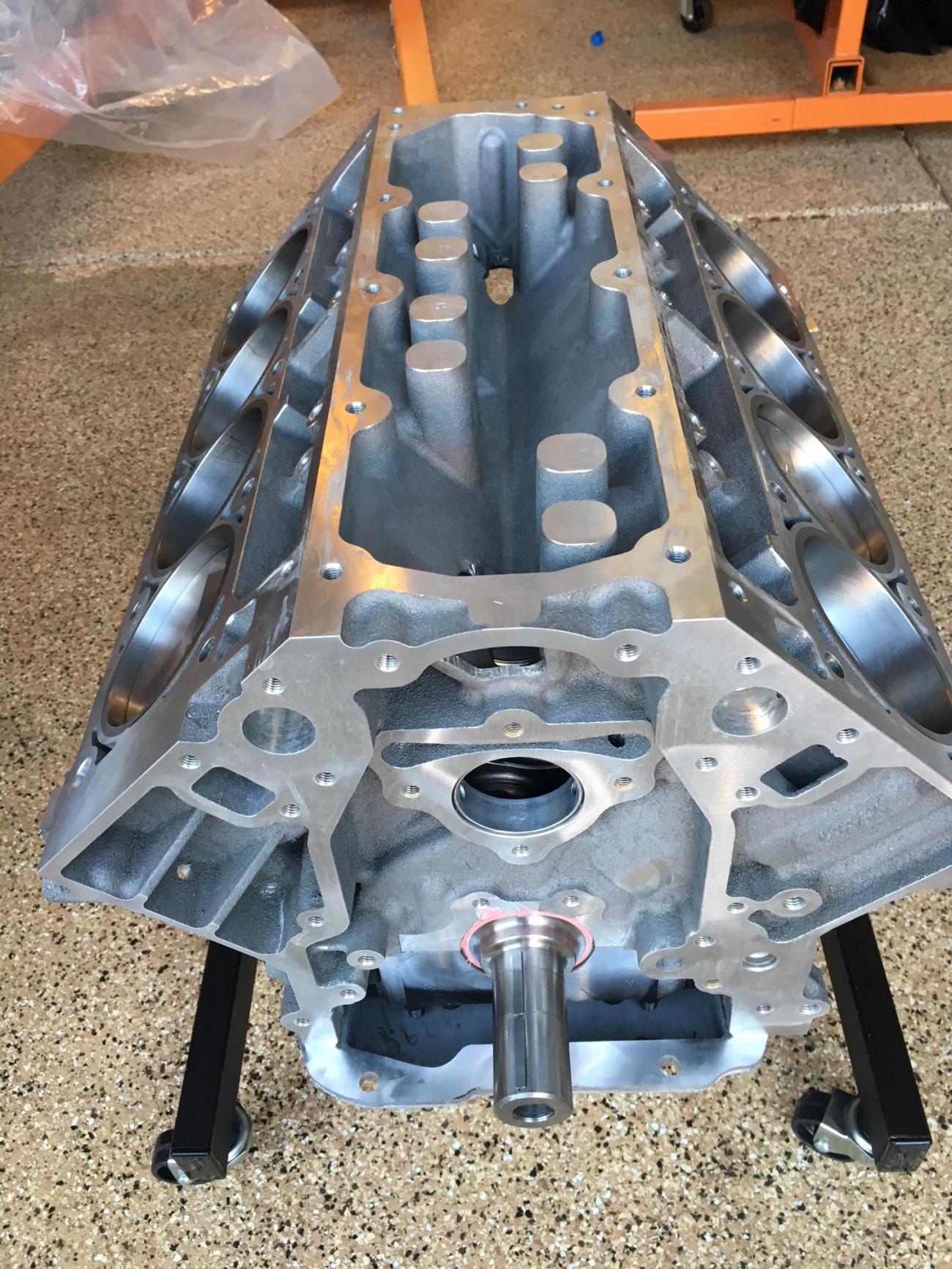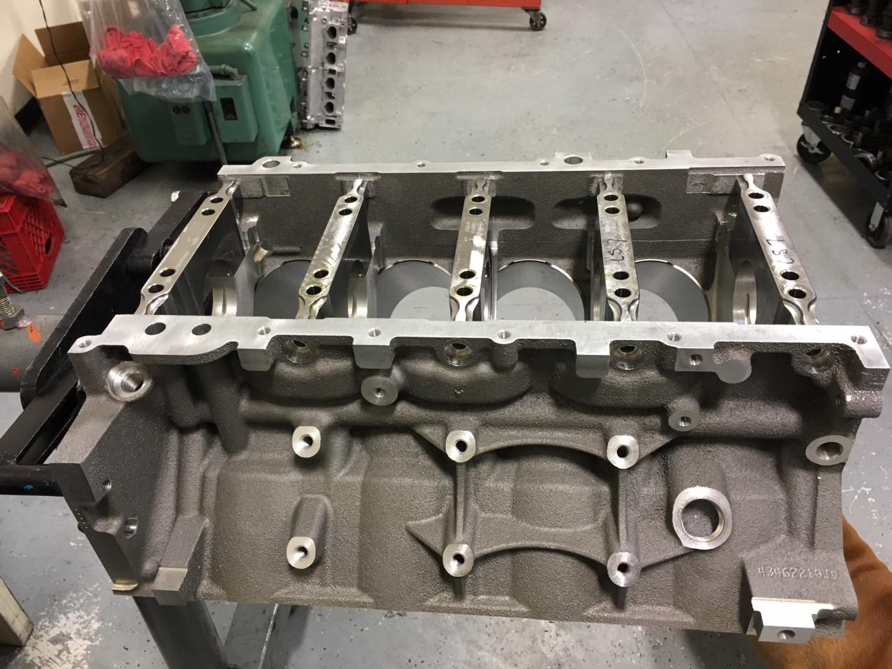 Here are pics of the bare block after machining and the assembled short block.
