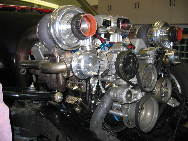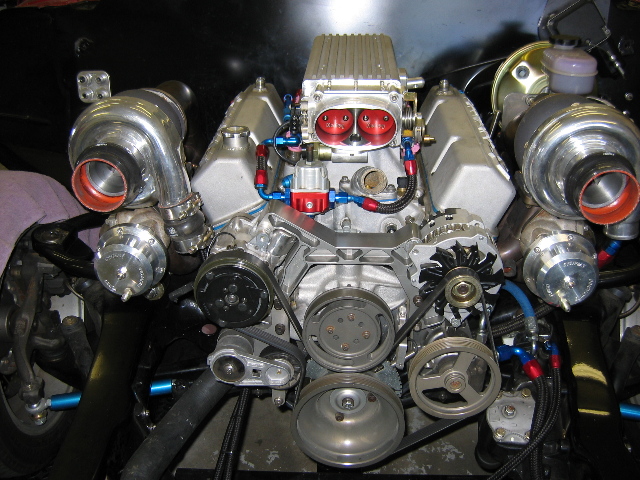 Dart block Callies crank Oliver billet rods Pro Topline 23 degree aluminum heads Crower stainless roller rockers W2W custom turbo grind cam Holley Stealth Ram and throttle body 65# injectors Vintage Air front runner system complete with alternator, ps pump, a/c pump Powermaster starter Electromotive Tec 3 system with sensors (you will need a new harness) info here: http://www.electromotive-inc.com/products/tec3.html Basically you supply the turbos, wastegates, fuel system, and wiring harness $350) and this is a turn key deal. Already tuned. Cost to build would be app. $20K.without turbos, and about $25K with. Like new, approximately 100 miles on it. I'm going to put my turbo LS2 in the car or else I would keep it. Runs excellent and very strong. Should be in the 800-850 HP range at normal street boost levels with the ability to turn it up for the track. Option 1: $12,500 complete. Turbos, wastegates, and downpipe not included.The Vintage Air unit and Tec 3 are $4500. alone plus the custom W2W headers are several thousand dollars. Option 2: $16,000 with turbos, wastegates, and downpipe. The Innovate liquid cooled ball bearing turbos are $2000 each plus $350 each for the wastegates. That would be $17,200 plus the wastegate plumbing if you bought them separate from the engine, so you'll save another $1200. as a package. Jody http://www.camcojb.com/malitude%20064.jpg http://www.camcojb.com/malitude%20063.jpg http://www.camcojb.com/malitude%20062.jpg http://www.camcojb.com/malitude%20061.jpg http://www.camcojb.com/malitude%20060.jpg |