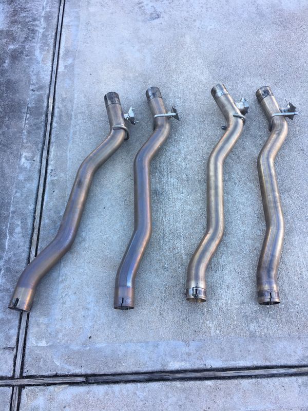 I'm looking for opinions on using used exhaust for my 68 camaro rather than buying a new set to save some money. I can weld and cut as needed. I feel like a new system is a little pricey and I will not be using all the pieces as the over axle will not fit without some modification with my Ridetech rear. Plus I see a lot of the systems are 400 series SS, I'd rather not use this. I was looking into a used aftermarket 3" corvette x-pipe to stick under there, not sure if it would interfere with the tunnel or driveshaft. Or I was thinking of this Hellcat mid section in the photo below, comes with two mid sections, all 4 pipes and is 304SS. I'd like to make this an x-pipe setup and there looks to be enough metal there to make it work for a faction of the cost of a new setup. Then add mufflers and dump it, possibly go under the rear later down the road if I don't like the drone. http://i151.photobucket.com/albums/s...psapae7pho.jpg |