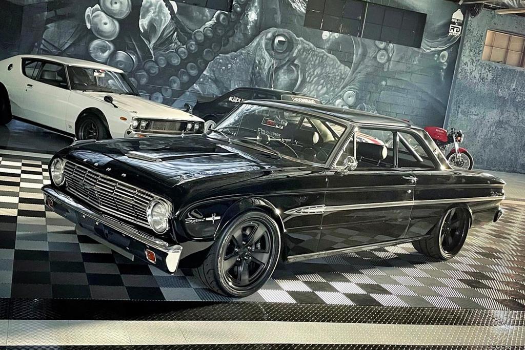 Black magic woman. Jorgen Moller’s Racedeck Garage Flooring 1963.5 "Voodoo" Ford Falcon was built by Tom Kirkham and the Cubic Performance team and is engineered to be a true multi-purpose street machine. It’s powered by a 630HP 5.2L Ford Performance Voodoo flatplane crank V8 and rides on Mike Maier Inc. suspension, double adjustable JRi coilovers, Wilwood disc brakes, 285/30ZR18 & 315/30ZR18 Falken AZENIS RT660 tires, and 18x10/18x10.5 Forgeline forged three piece JO3C wheels finished with Satin Black/HTM/Brushed/Dark Smoke centers & Black Pearl outers! See more at: https://forgeline.com/customer-gallery/jorgen-moller