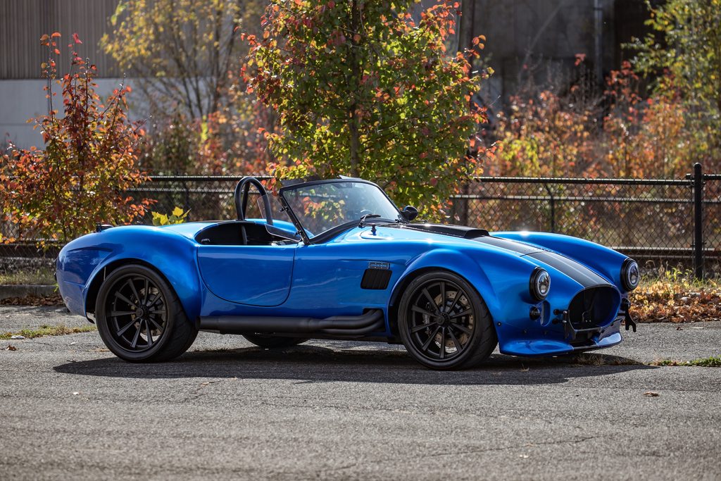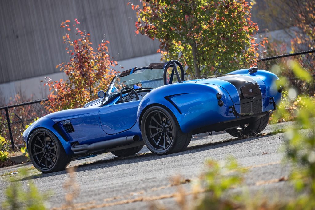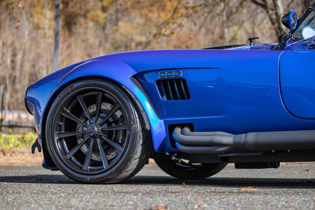 Create a ruckus. This "Ruckus" Backdraft RT4GT Cobra from Vintage Motorsports is finished in Monterey Blue with black stripes. It's powered by a 700HP VMS Stage 2 Godzilla 7.3L V8 mated to a Tremec TKX 5-speed manual transmission and rides on Wilwood disc brakes, 245/35ZR19 & 325/30ZR19 Toyo Proxes R888R tires, and 19x9/19x11 center-locking Forgeline forged three piece Dropkick wheels finished with Satin Black centers and Satin Black outers! See more at: https://www.forgeline.com/customer-g...sports/cgk2872