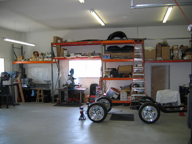 Not finished with it yet, but getting some progress done since the car is gone. This is my 1400' shop, the older of the two. Finally put up some pallet racking to get things off the floor. Hung up some of my posters from you guys too!