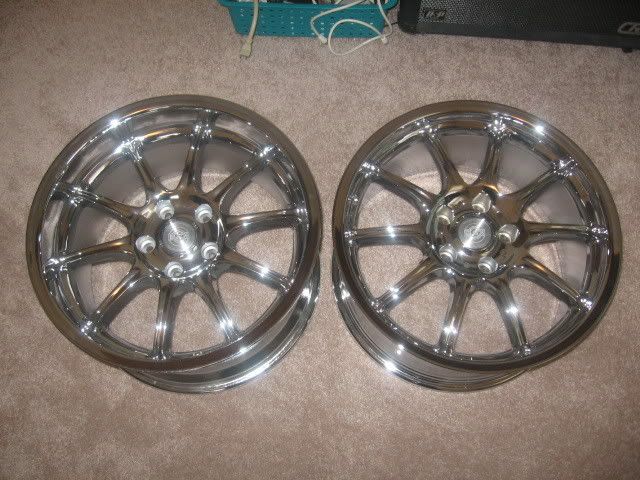 Specs: BSA Eagle Rock Wheels 18x9 and 18x10 Triple Chrome The are a staggered offset, so the wheel lip is larger in the rear. Pics: http://i28.photobucket.com/albums/c2.../Wheels005.jpg http://i28.photobucket.com/albums/c2.../Wheels001.jpg http://i28.photobucket.com/albums/c2.../Wheels003.jpg |