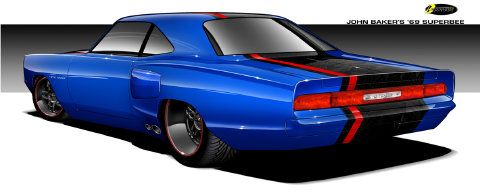 This Super Bee is going to be really cool! It's power by a Twin Turbo Viper V-10. The turbos are mounted in the rear quarters. It hard to tell from the pictures but the hold mimics the Viper hood.
