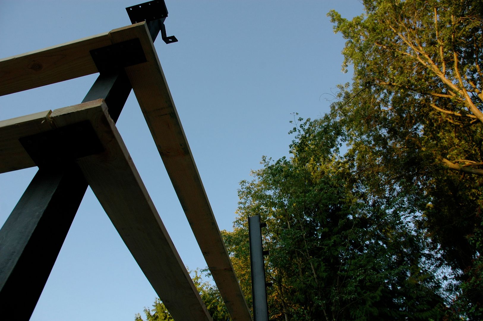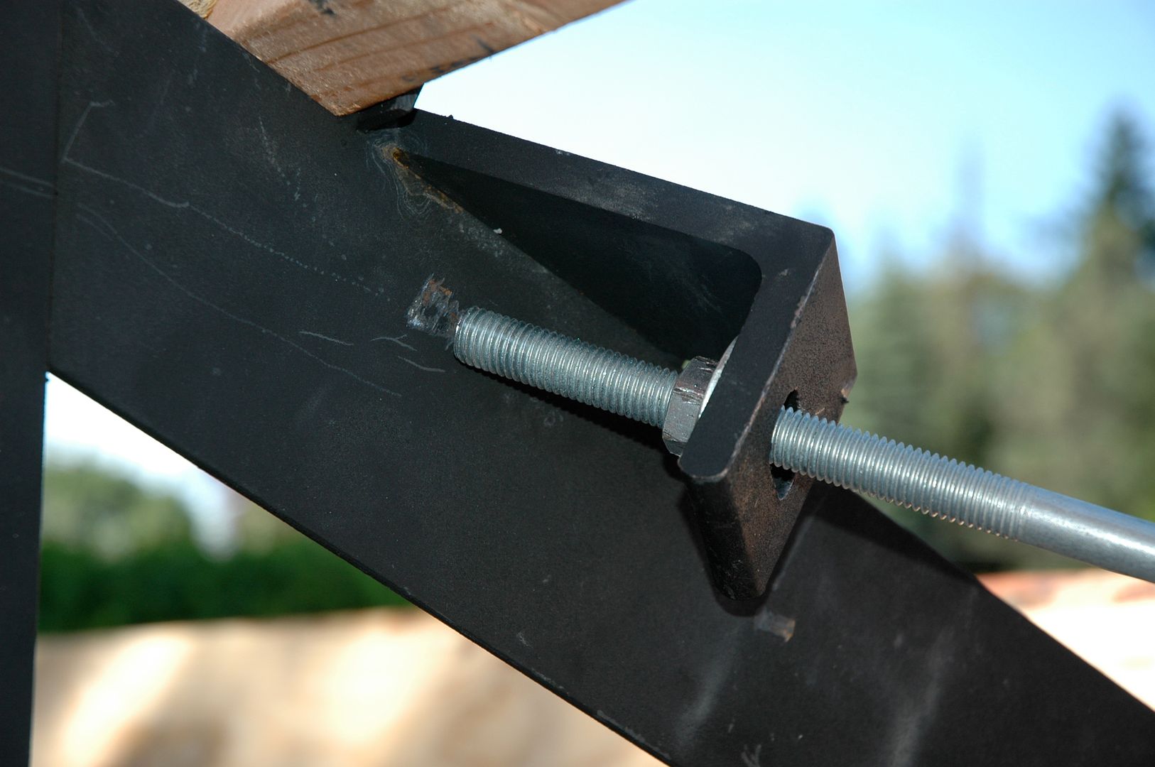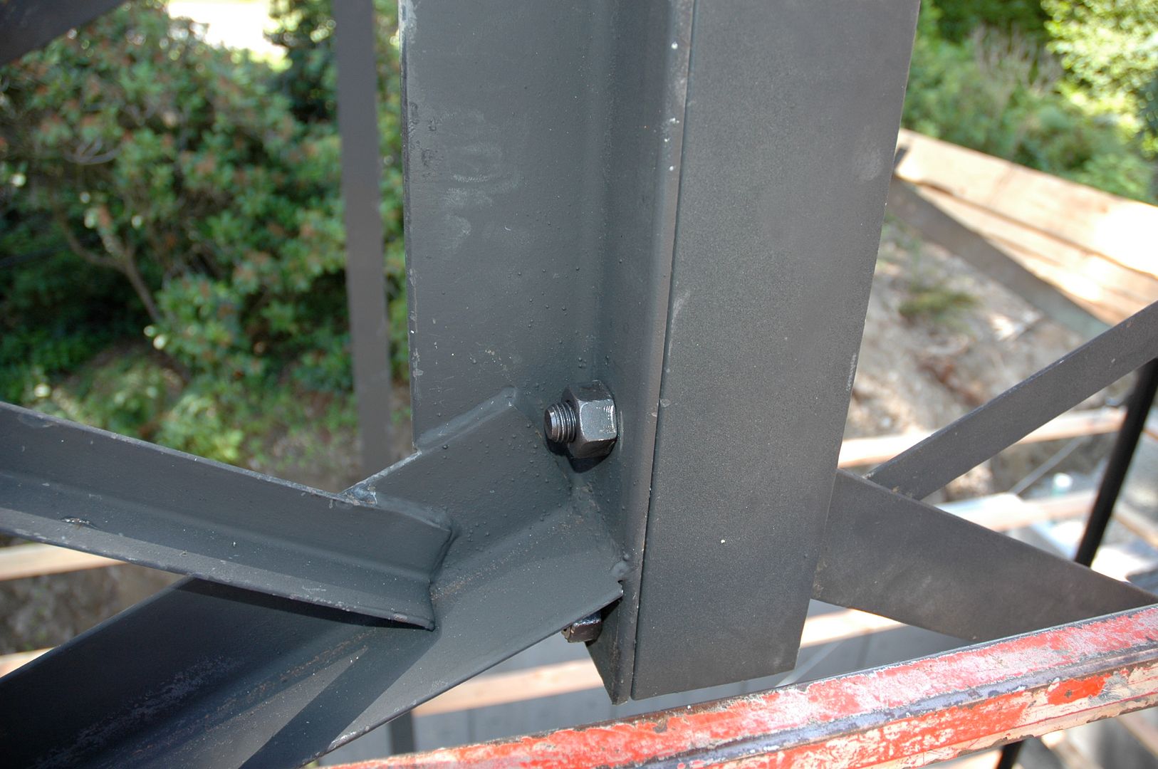 Let me ATTEMPT to explain this..... This is a back corner post/upright.... it's the outside corner. When THEY put this together --- 3 guys standing around staring up -- so I went out to see why they're all staring and scratching their sack..... and they're discussing cutting the brackets off where they extended beyond the angle the next day and re-welding the part that extended beyond the angle - around the corner so they could put on the board that should come from the back side... In other words -- they had run the board on the side (on the left of this picture) of the building all the way to the end of the bracket and attached it -- then they couldn't land the backside board anywhere since they'd covered up the entire bracket... their SOLUTION was to remove the boards -- cut half the bracket off - and re-weld it to the back side of the angle upright.