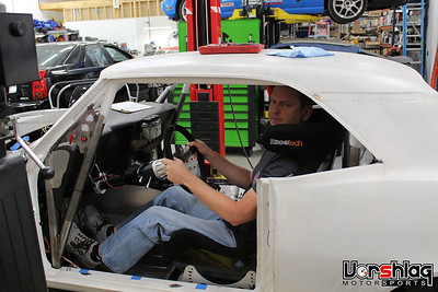 Also, the first of two Racetech front seats was also mounted - you can see that I'm sitting where the back seat would normally be! That's the driver setback that we designed in from the beginning, which allowed for so much engine setback.