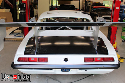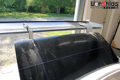 Now I was in favor of a trunk mounted wing upright with separate bracing underneath to the frame, which would allow the trunk to swing up with the wing attached, like we have done many times - see these two cars below: