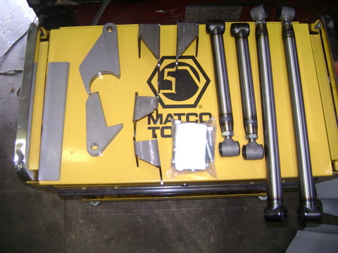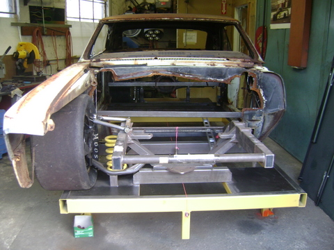 Worked On The Car A Little Bit Over The Last Couple Of Months,front Clip Is Centered And Squared,front Suspension Mocked Up,fr And Rr Wheels Mocked Up,body Reassembled To Get An Accurate Fr Wheel To Wheelwell Centering So I Could Locate Rearend Centerline,art Morrison 3 Link Is Here And Mocked Up To Locate X-member,time To Lift The Body Off And Build The Chassis