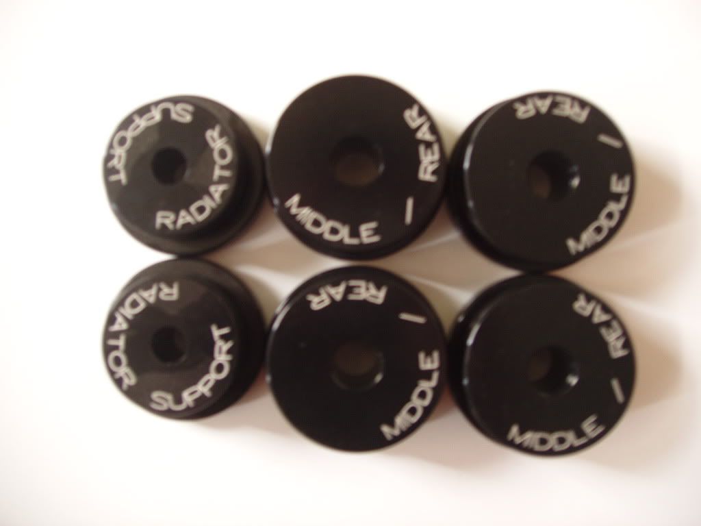Here are some more parts that we machine! I have been making these sub-frame bushings for couple of years now.. I dimensioned them off factory NOS rubber bushings & this is what drove me to make my own.. The middle & rear bushing measure different thickness with a difference on the radiator bushing.. These bushing are made of 6061-T6 aluminum, e-coated, & laser engraved..