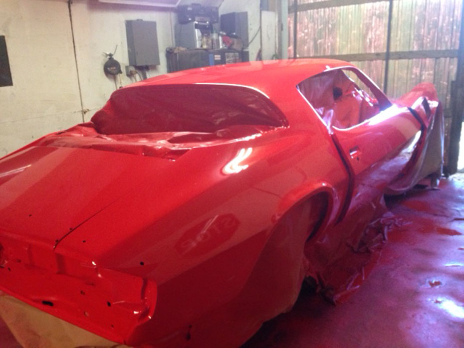 She's finally painted. And very, very red. Paint turned out good. I have my front wheels on and just got my CPP c5 spindles, hubs, and and brakes ready to go on.