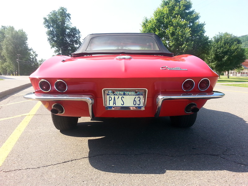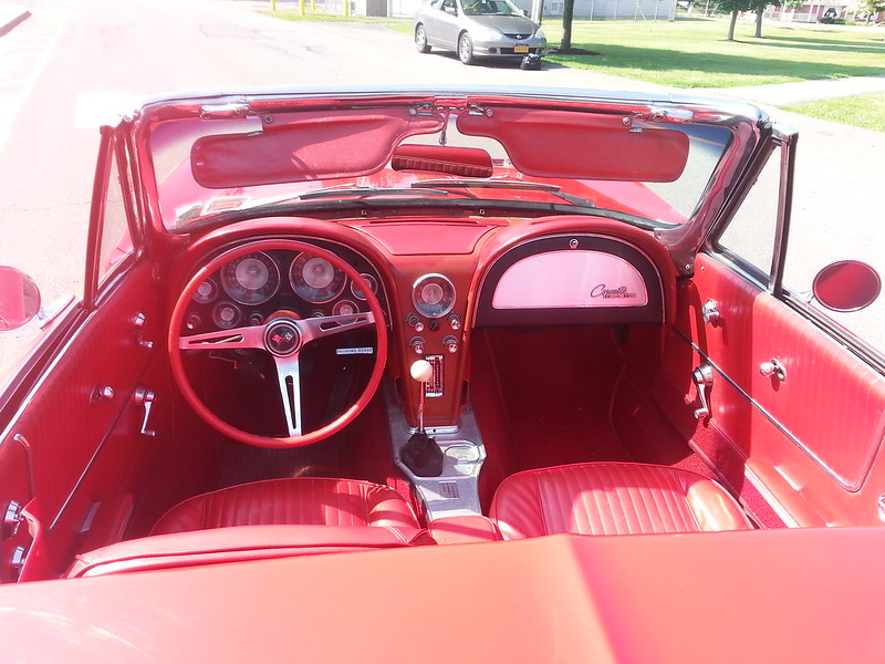 Other than the new motor, the driveline is completely stock. I had the pleasure of driving the car and everything was very tight and worked as it should. All the lights, signals, choke, etc. The car comes pictured with an aftermarket radio that is custom fit for the 63, but also will come with a fully functioning AM Wonderbar radio that is original to the car. The exhaust that is on the car currently is a Smitty’s fully stainless exhaust, and sounds just like a sports car should from the 60’s.