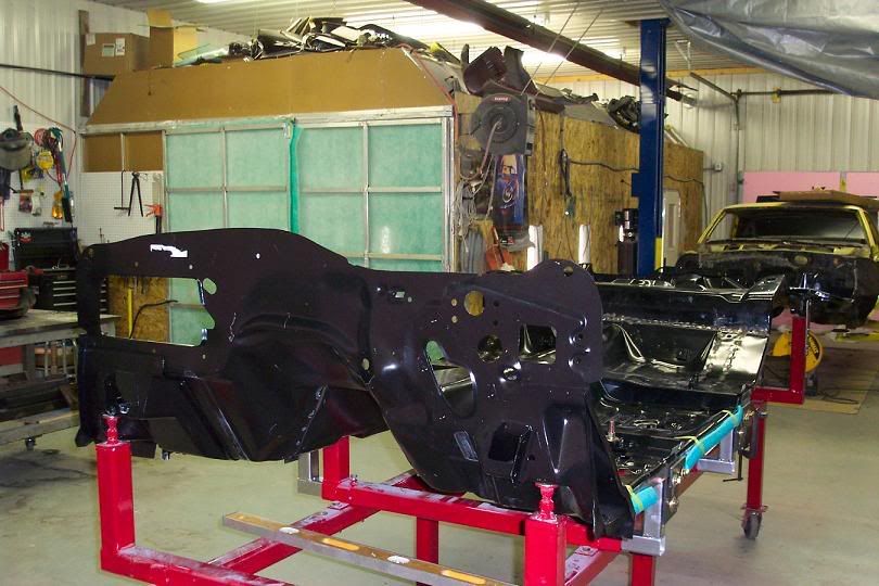 Hello, great forum. My name is Josh, I am 30 years old and run a small restoration/custom shop in Indiana. I have restored several cars such as the 67 fastback in the pics. That was a concourse restoration, nothing custom. I am doing this firebird for my brother. He drove it for a few years and we finally decided to redo it. I bit off a BIG chunk! I used the Fisher body manual to build a jig for the build of the new underbody. Started with rear frame rails and went up from there. The only original sheet metal is the roof and interior pieces, pillars and such, and cowl. I wanted to do something different so I had a design in my head and started working. I have some ways to go but so far, I have reshaped the bumper, extended the rear roll pan out to be flush with bumper. shaved it and cut off the drip rails. I am having some custom pieces lazer cut for the rear tail panel between the tailights and one for under the bumper that attaches on the lip I added to the center of the bumper and goes down over the exhaust opening in the roll pan. It adds a honey comb matrix with the word FIREBIRD in a modern font, on top and the lower peice will have a newer pontiac emblem in the center. The exhaust will come out the center behind the lower honeycomb panel. There will be a flush mounted gas cap welded in the center behind the pontiac emblem. (actuall a chopper gas tank filler cap, weld in flush mount that you push in and it pops out and you unscrew it.) I plan to change the nose of the hood so its "beak" isn't so pronounced. I will do away with the ugly rubber gaskets around the headlight covers and do a little something something on the front valance. I also am going to make the window openings smaller and bring the glass up level and use modern window molding for a cleaner look. I am planning on using the TA wing, slightly modified and the TA fender scoops, again tweeked a little. anyway, I just put up a new shop, the pics show my home shop that I started out of. I will be moving to my new shop in a few weeks, just have to epoxy the floors and move my lift. Got a "real" booth and mix room now, can't wait to open up to the public and have a go at it! The only problem I have with this build is my brother wants it to stay YELLOW!!!! I could use some ideas as far as color schemes involving yellows of all kinds. anyway good to be on the forum, here are the pics.