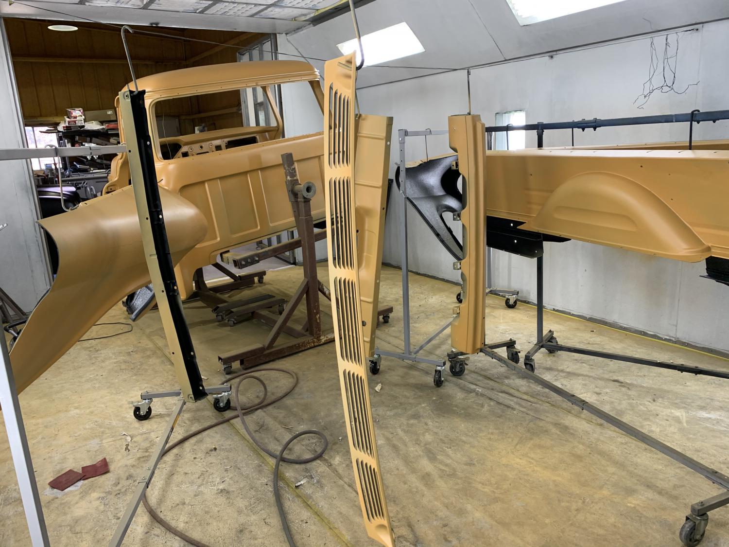 This February I dragged it out of storage and dove into the body work. I have to admit the amount of effort that went into getting decent gaps and reasonably straight panels was far more than I anticipated. The fiberglass bedsides took an enormous amount of work to get straight.