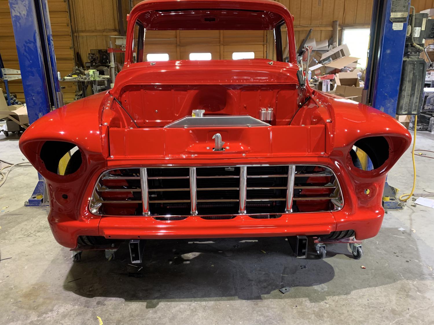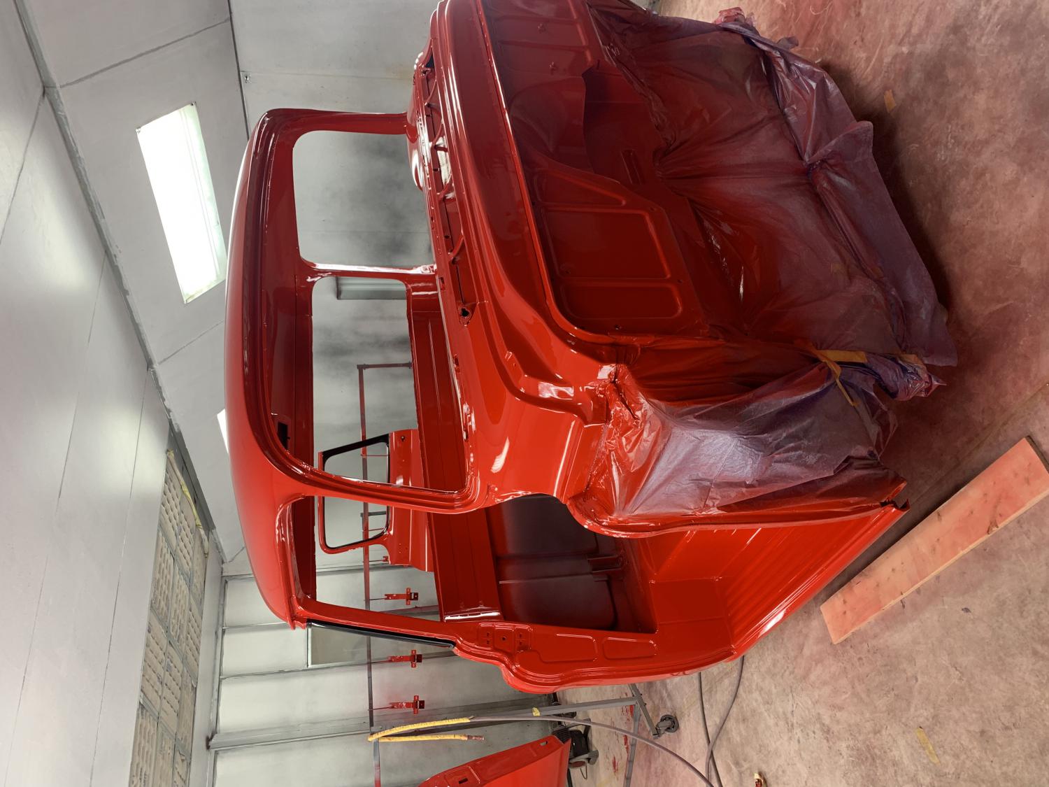 With the bed done I turned to the cab and front end. More SPI red and a little black around the rear glass and door glass.