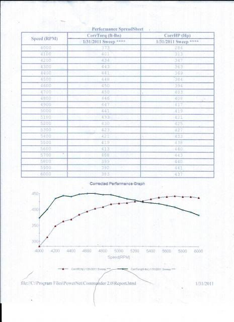 We broke-in the engine on the dyno. I have video of the break-in and idle sound. I'll post links when I get them uploaded. The dyno chart is pictured below. The engine was never installed so the only run time was on the Dyno.