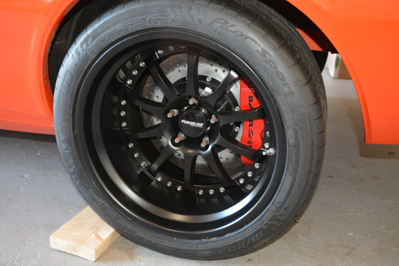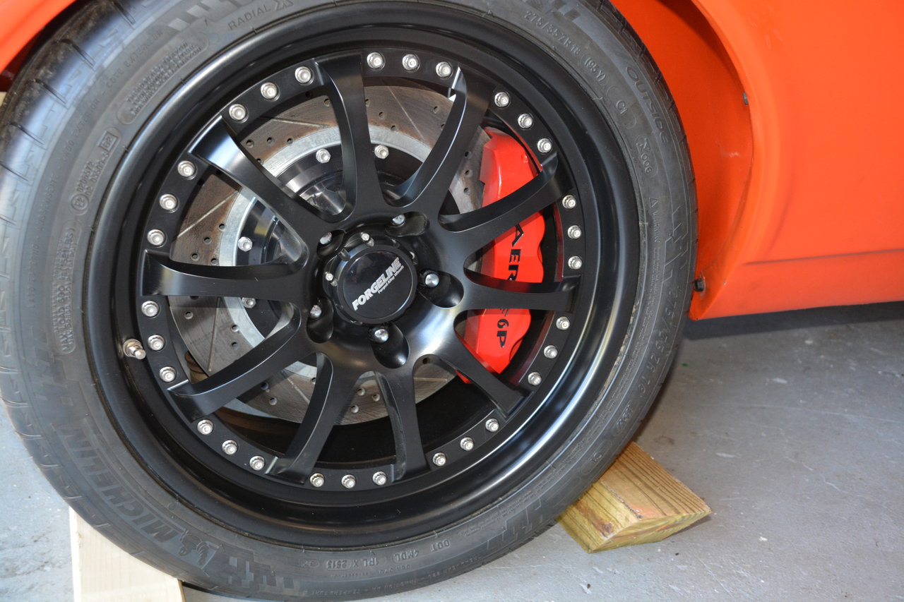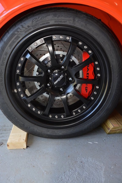 I just bought a 68 Camaro that is a full pro touring car and I am changing a few things around. One of which are the Forgeline Wheels, that are listed in this post. I bought the car from a long time member; he is on various car forums. I am selling them because I am going with a different color scheme for the car. The rims were purchased in November of 2013 and have only been mounted and are currently on the car. However the car doesn't run and these rims have NOT seen any street time. The invoice was dated 11/26/13. The wheels are setup based on Detroit Speed recommend back spacing for their suspension system front and rear. The center, inner and out rims are finished in satin black. The hardware is the upgraded titanium.
