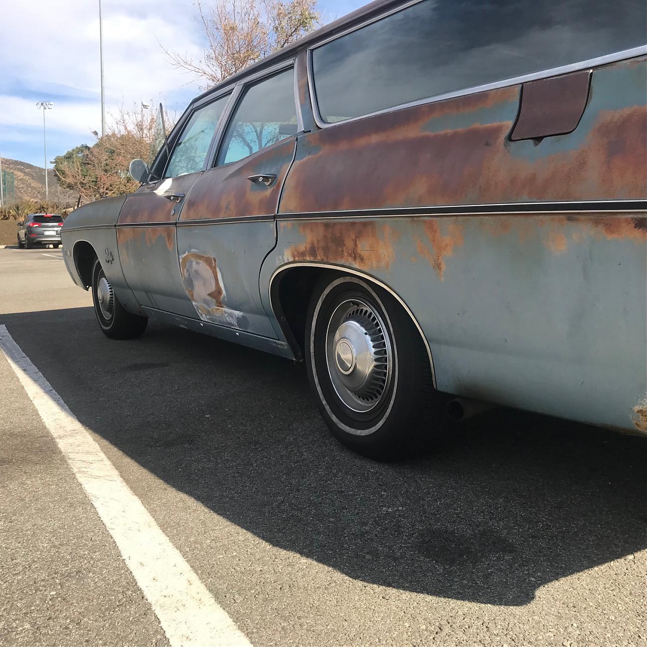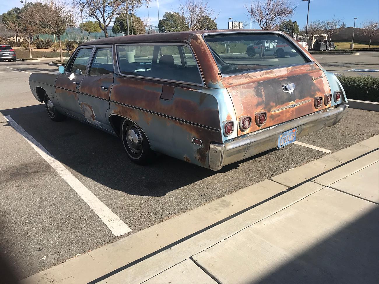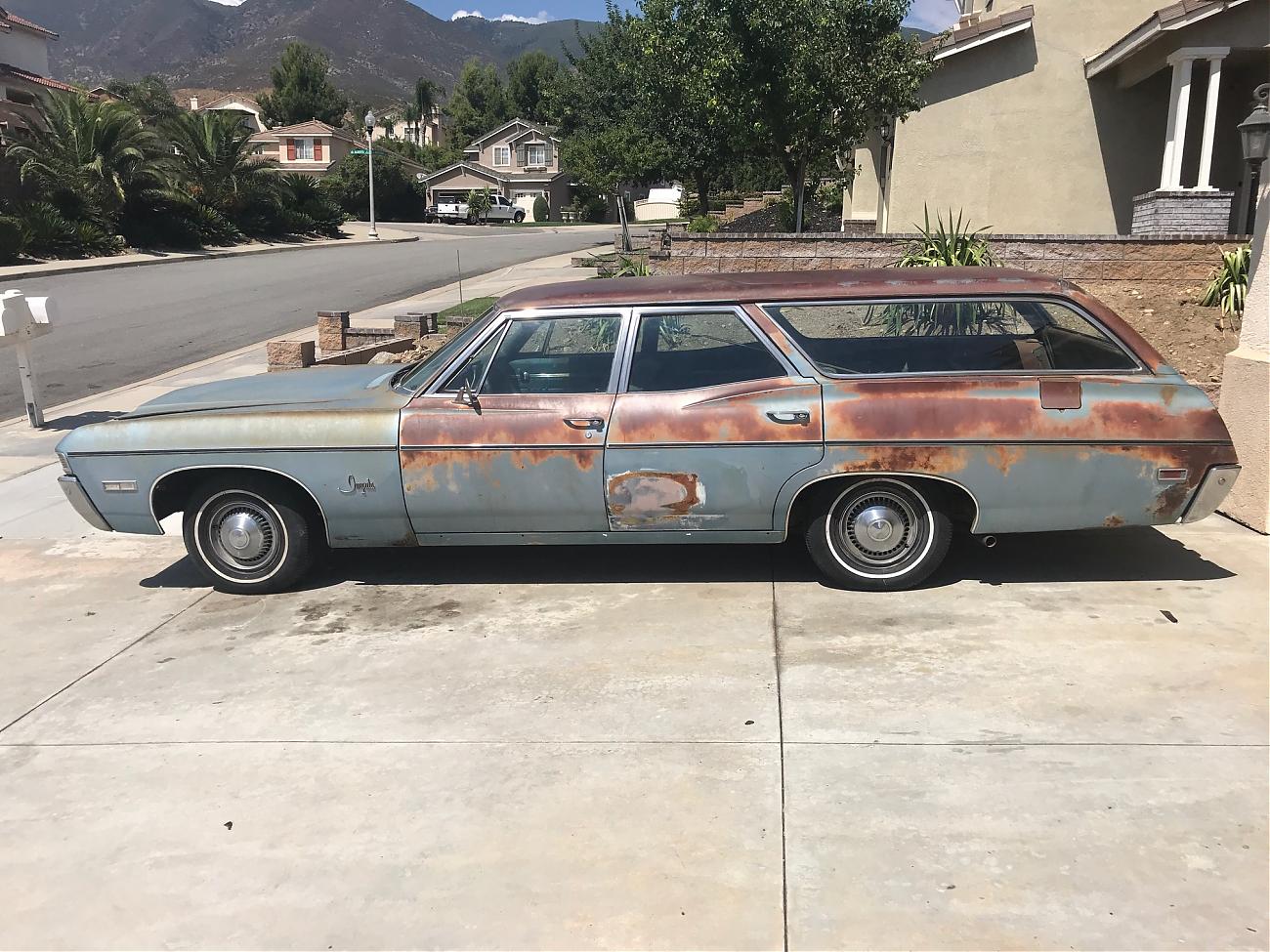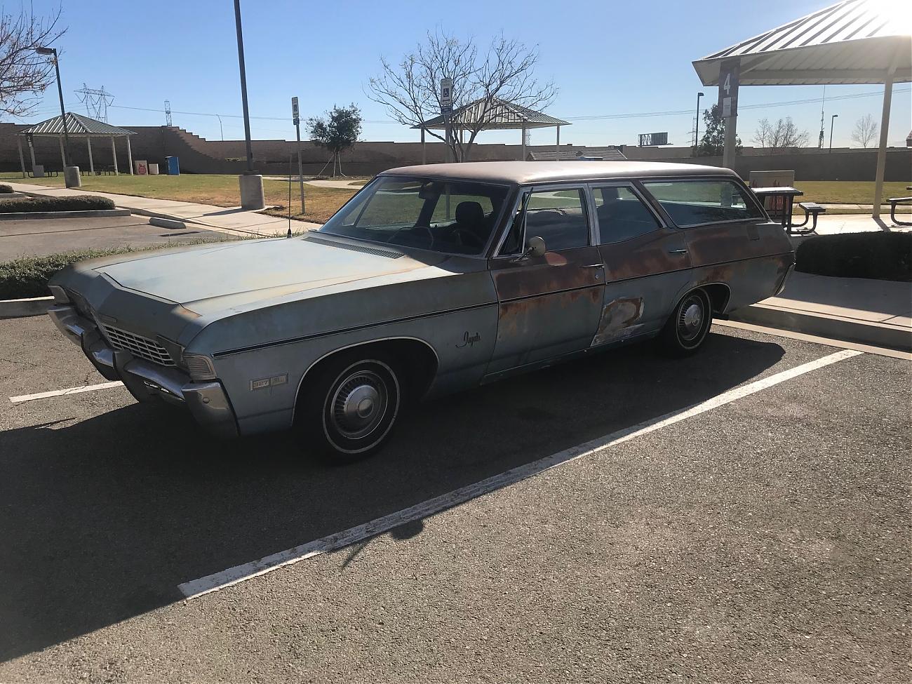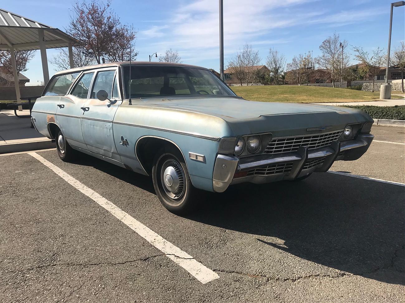 Clean nice patina really straight wagon it has the original 327/350 that runs STRONG and will take you ANYWHERE you want to go! It is an original AC car (everything is still there the air recirculating system works as it should as well) the car has 57K original miles! Clean title I am the third owner bout it from the original family. I also have the electric back window to convert from manual, the car has new tank, new carb, HEI ignition, doesn't overheat drove it around in the summer when it was 95 degrees and it never overheated on me the car is RELIABLE as hell can drive while you work on it will need windshield and other stuff but you already know that its a 68..... VERY LITTLE rust!!