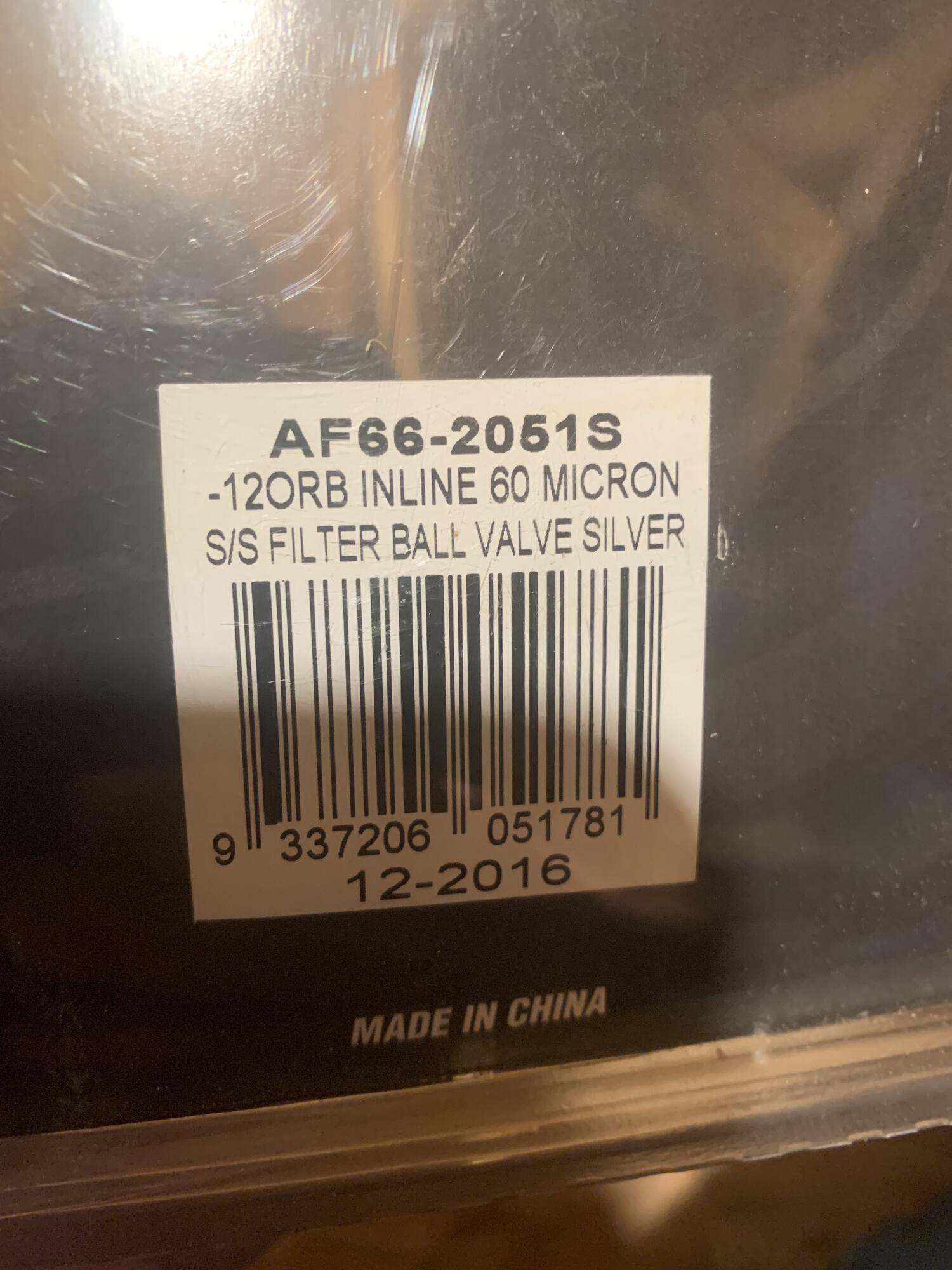 I bought 2 of these filters for a project and ended up not using them. Taking a loss selling them for quite a bit less than paid, but that's part of the hobby I suppose. These are -12 O-ring boss, shutoff filters by Aeroflow. Quality looks awesome. I'll sell them for 150 shipped for both or 80 each shipped in the lower 48