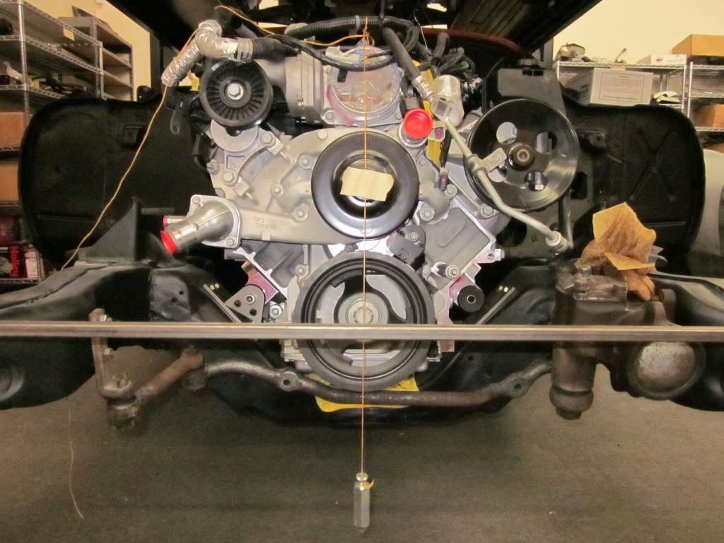 Factory motor & trans sits 1 inch towards pass side measured from centerline of chassis