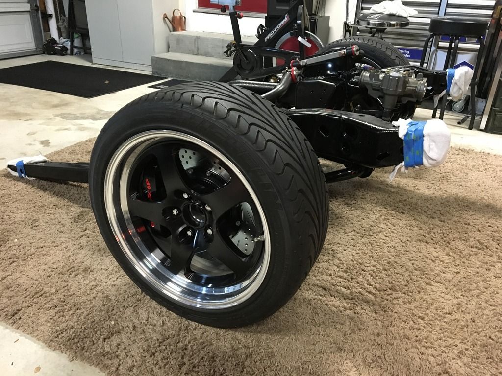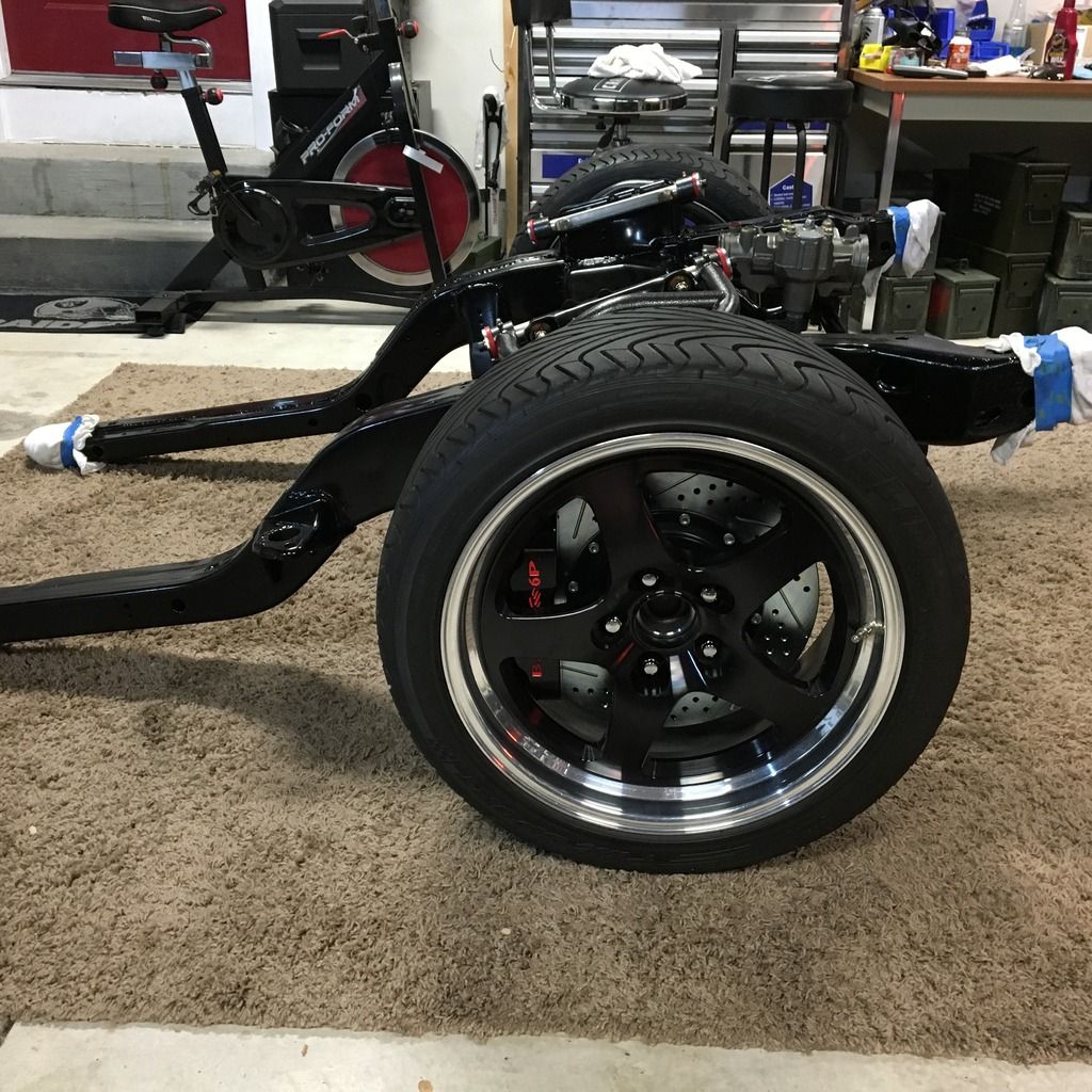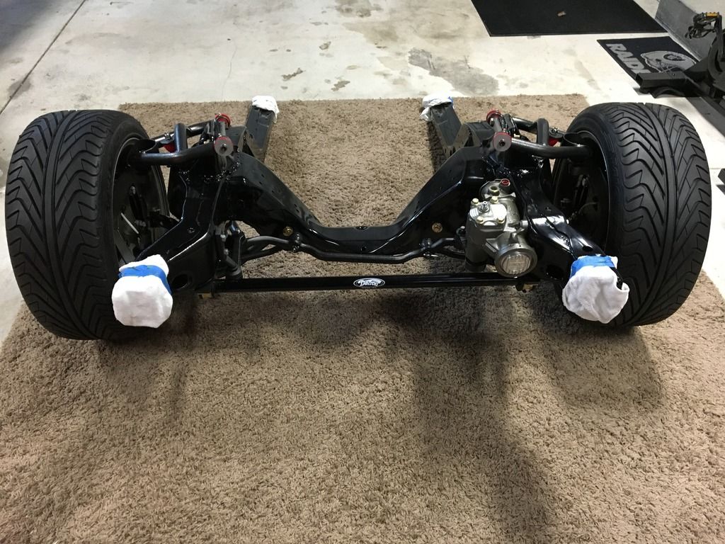 OK guys, Im back and forth on this... My car is over at Vince's shop(Mean Street Performance) having the Detroit speed Quadralink/Mini tub and metal work done, and Im getting ready for further actions. I have a stock front powder coated subframe, did the coil overs, Tubular control arms, AGR Box, DSE sway bar, CCP spindles with corvette hubs and baer brakes.. So car will be sweet.. question is, Its a 71 Formula, fiberglass hood(dual snout) and the 1 year only shark fins grills on the fenders. Should I put the wheel flares on the front and back?? I love the look, but havent had any real luck finding any good pics.. heres the sub frame waiting to head over to Vinces shop.. and by the way, Vince's shop is awesome.. the work that is going on over there... Mama Mia..